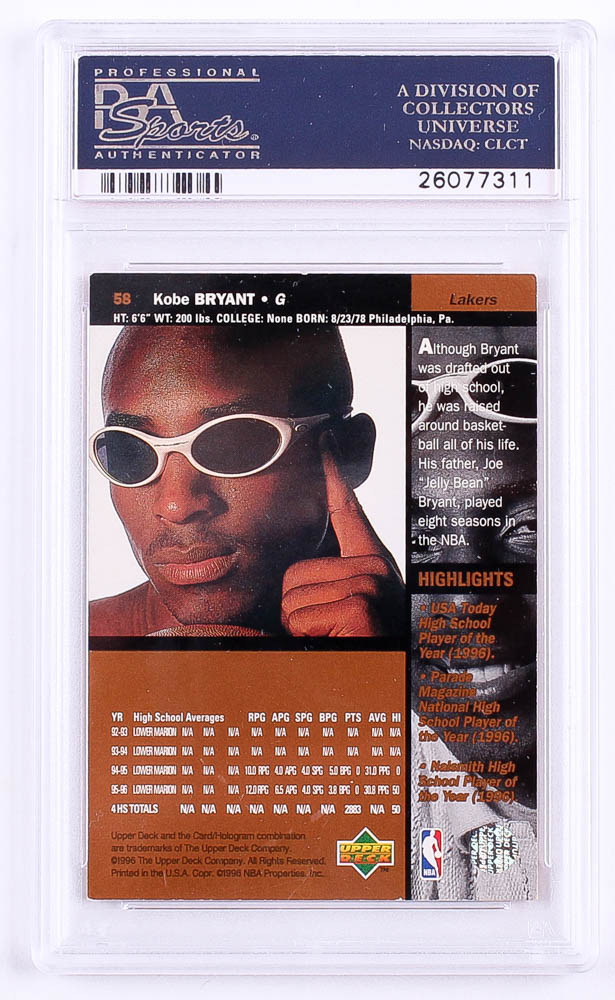 Kobe Bryant 1996-97 Upper Deck #58 RC (PSA Authentic)