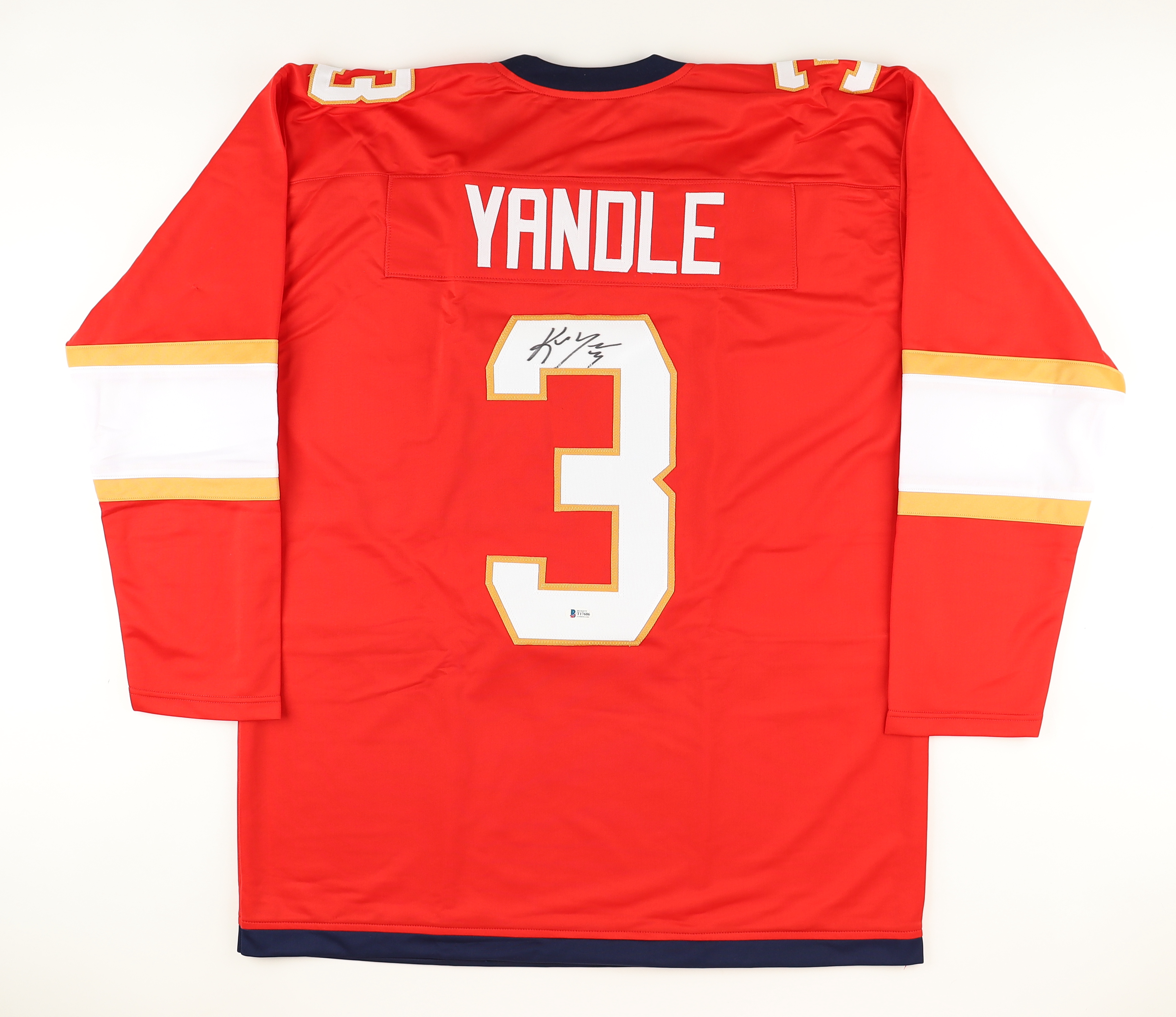 Custom on-ice style jersey. Everything sewn on, size XL. Hand-signed by Keith Yandle.