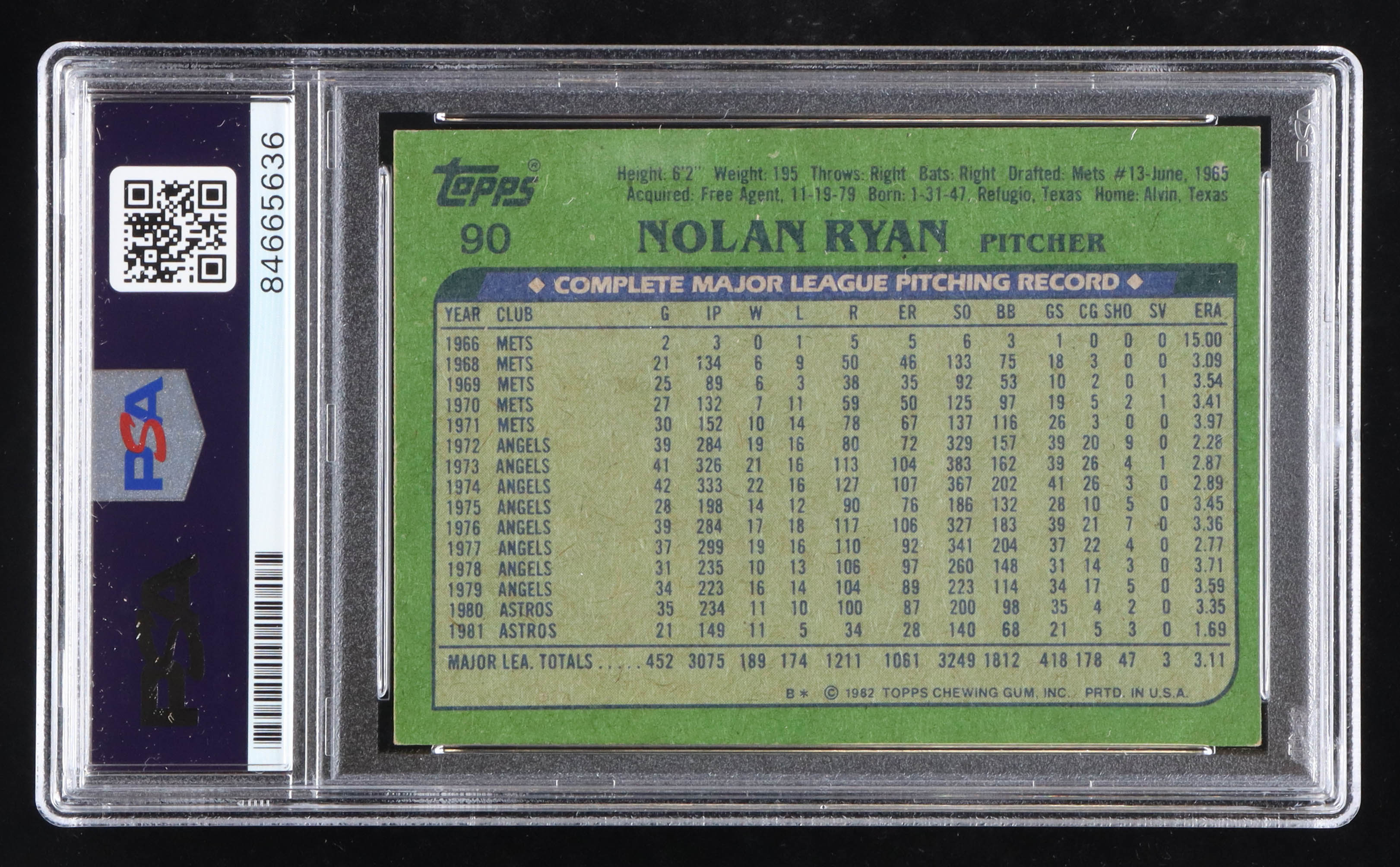 Nolan Ryan Signed 1982 Topps #90 (PSA)