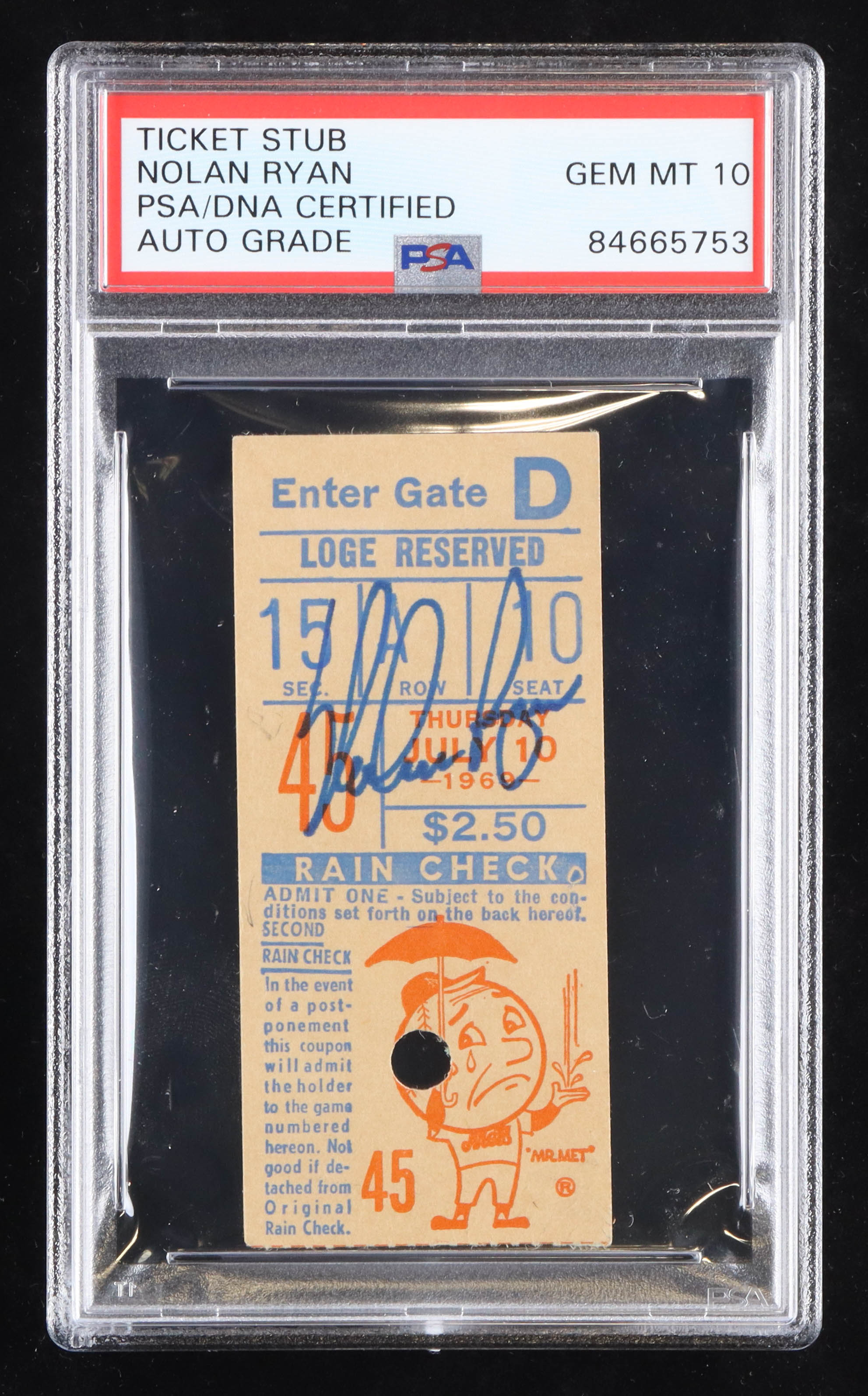 Nolan Ryan Signed 1969 Championship Season Ticket Stub (PSA)