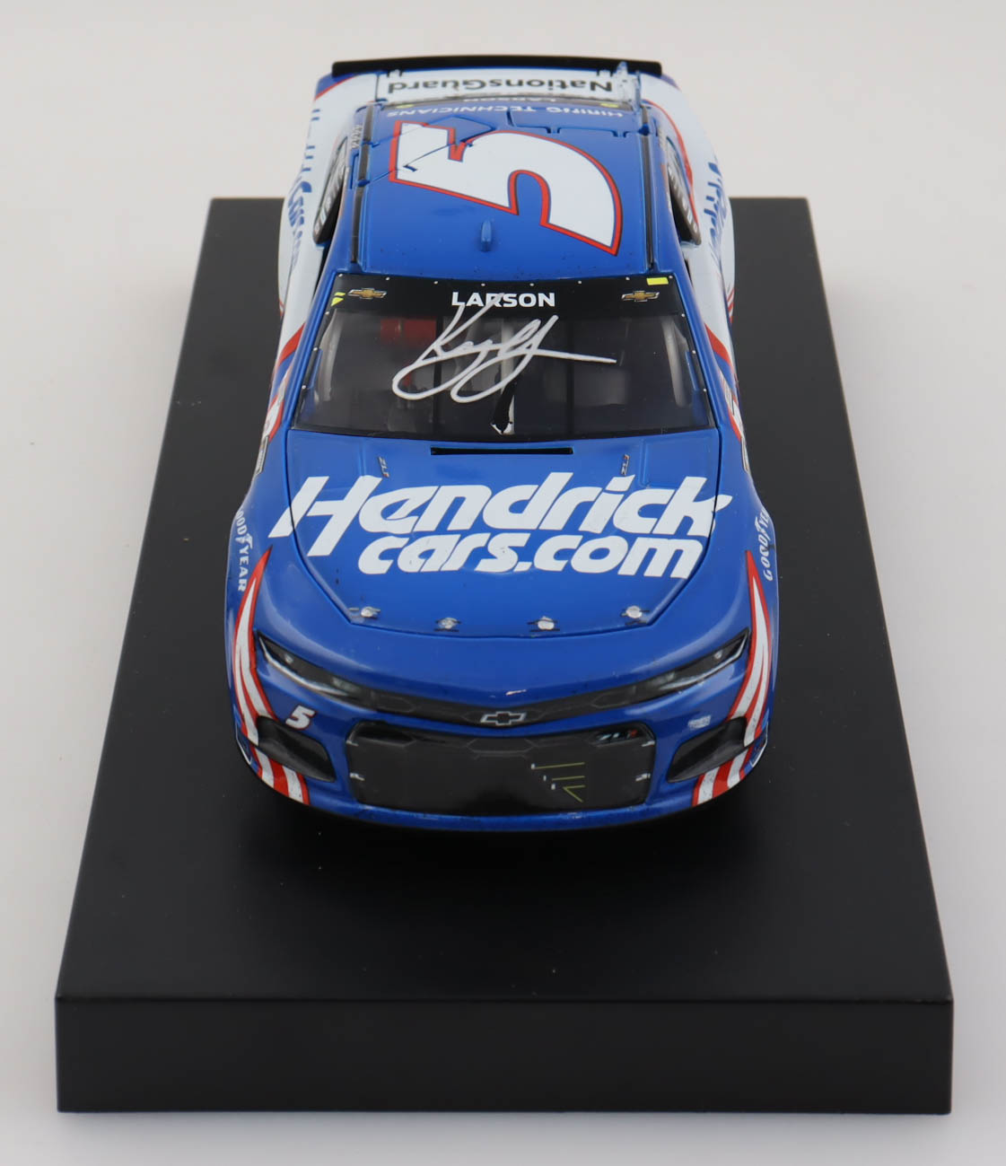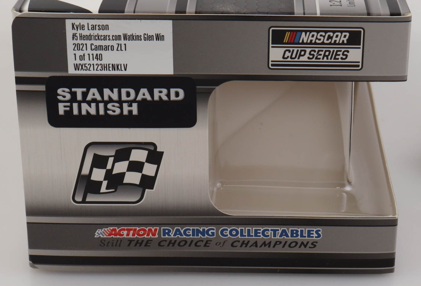 Premium Action die-cast car hand-signed on the windshield by Kyle Larson. The car is limited edition to just 1140 produced and includes the original packaging.