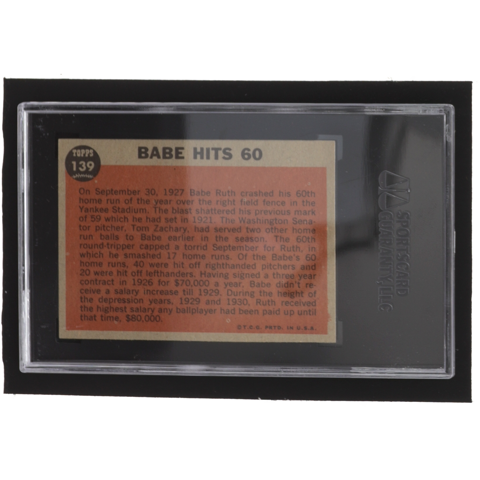 Babe Ruth 1962 Topps #139A1 Special 5 / Babe Hits 60 Pole (SGC 7.5)