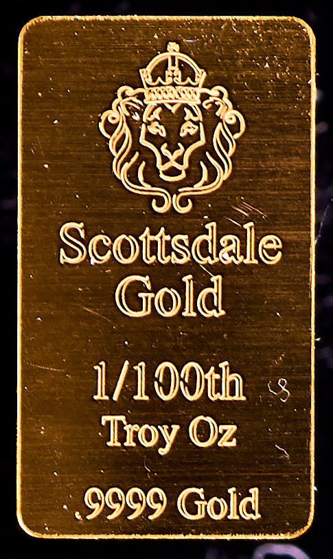 Scottsdale Gold 1/100 Troy Oz .9999 Fine Gold Bullion Bar