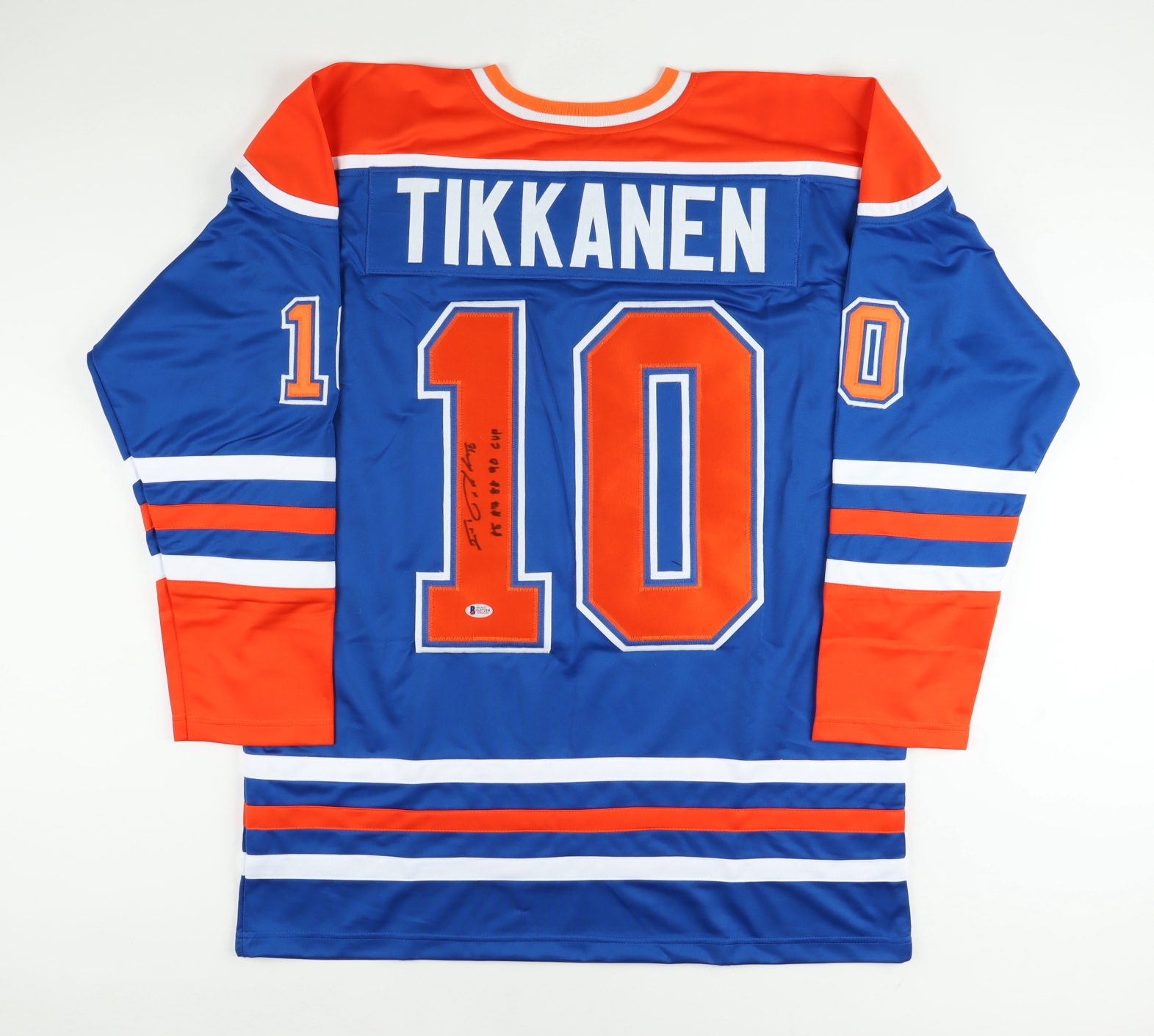 Esa Tikkanen Signed Jersey Inscribed "85 87 88 90 Cup" (Beckett)