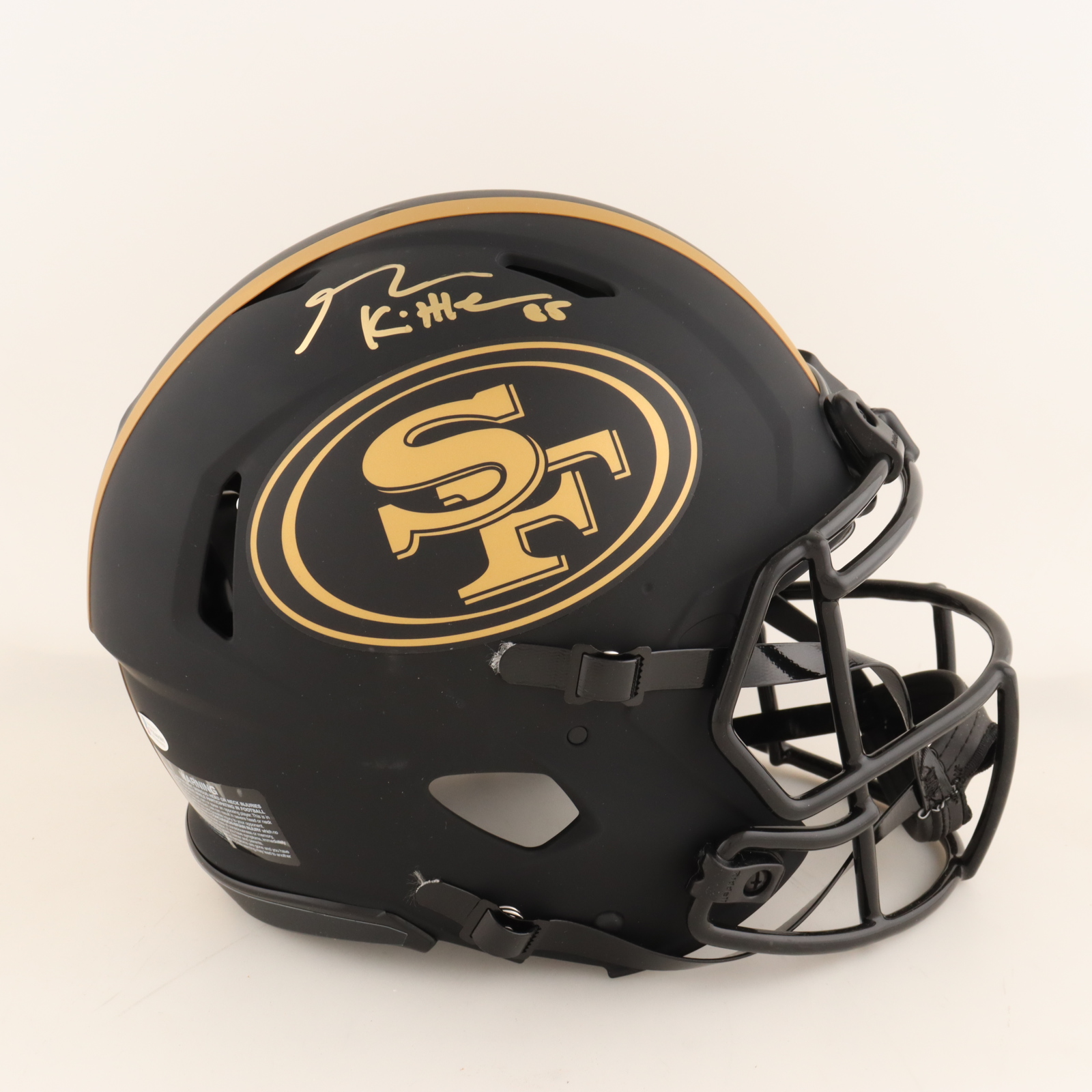 Riddell San Francisco 49ers full-size authentic on-field Lunar Eclipse Alternate Speed helmet. Has been hand-signed by George Kittle.