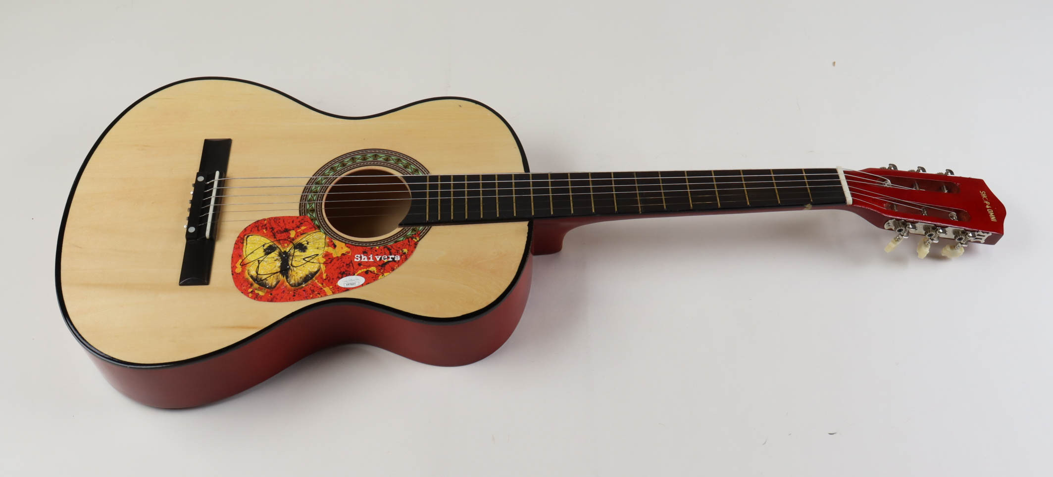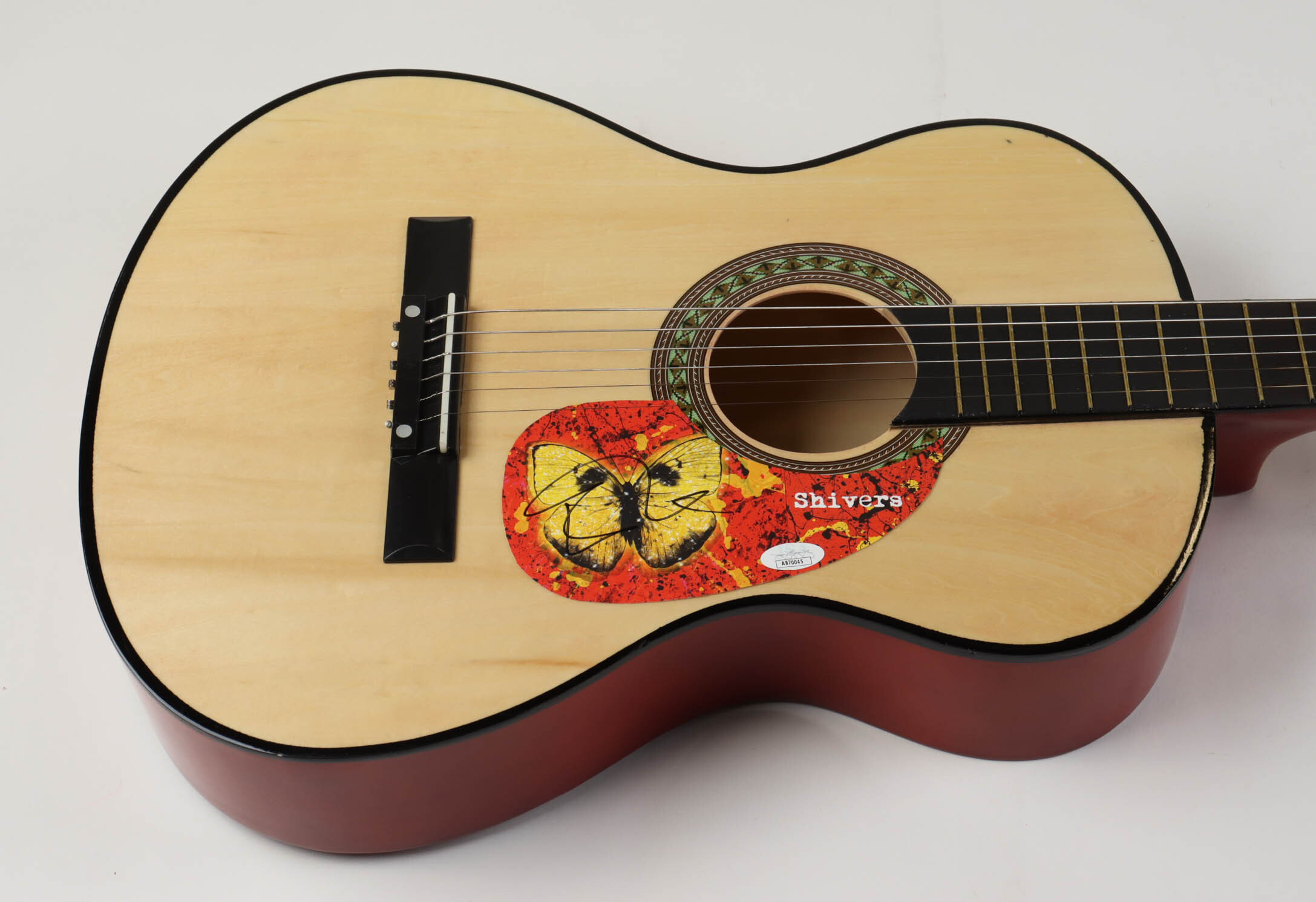 Custom acoustic guitar measures approximately 39" in length and has been hand-signed on the pick-guard by Ed Sheeran.
