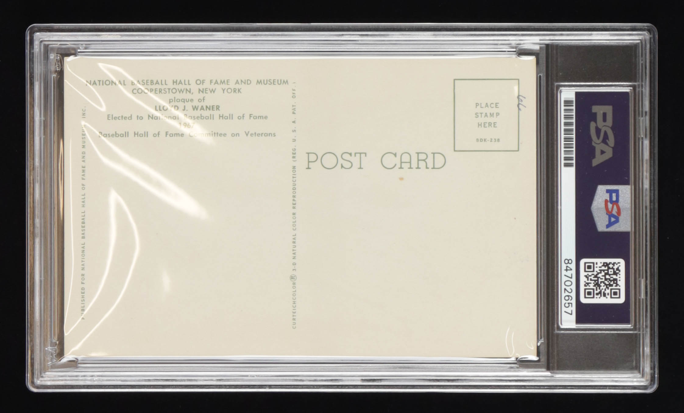 Lloyd Waner Signed Hall of Fame Plaque Postcard (PSA)