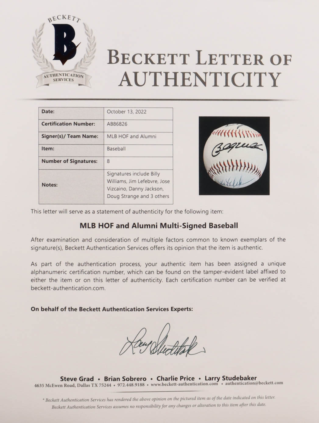Baseball Signed by (8) with Billy Williams, Jim Lefebvre, Jose Vizcaino, Danny Jackson, Doug Strange (Beckett)