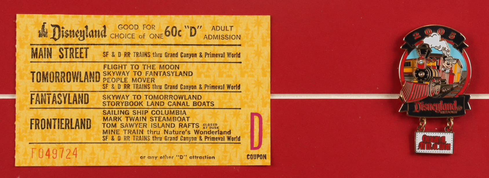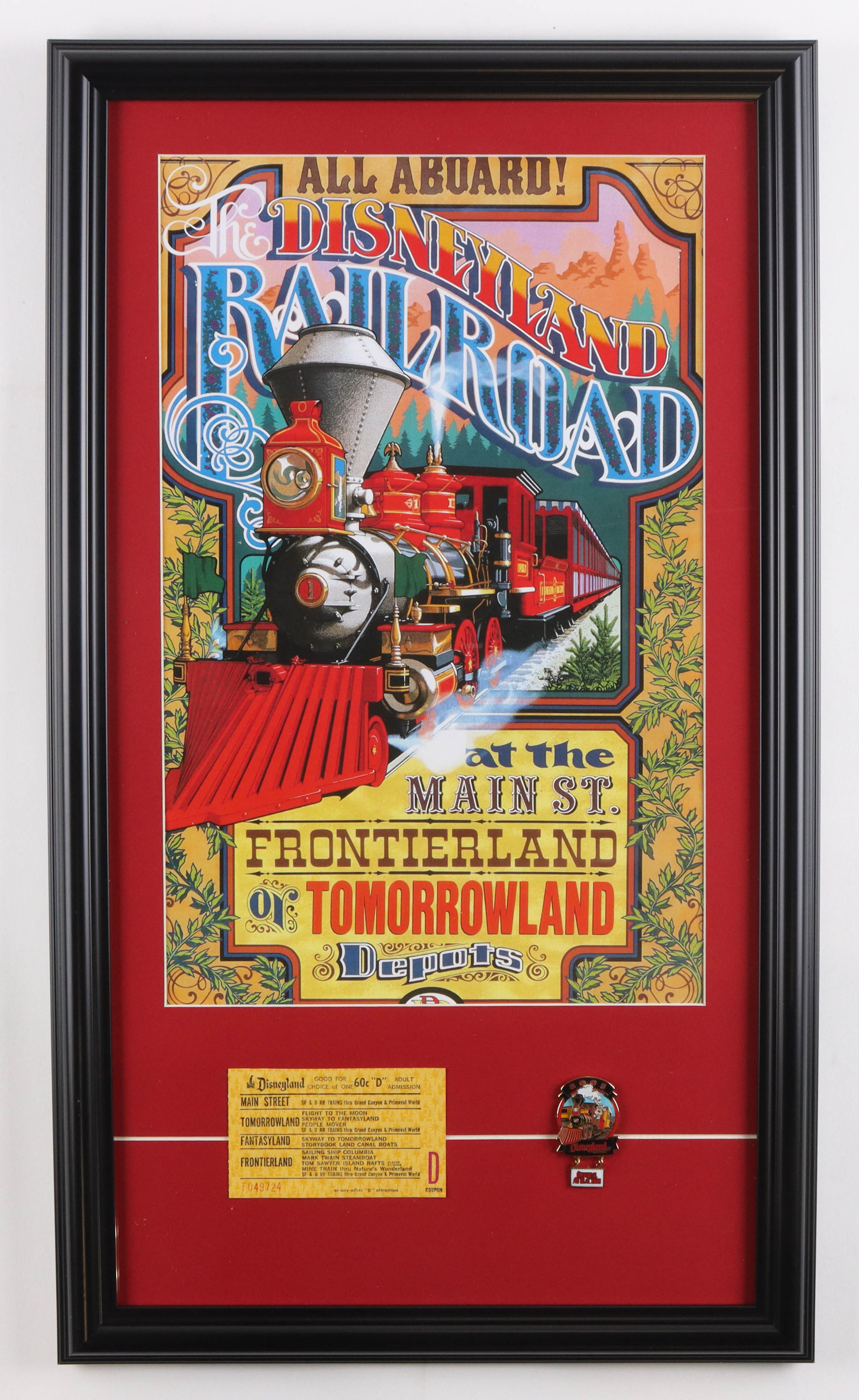 Disney World Railroad Custom Framed Print Display with Vintage Train Ticket & Official Disney Railroad Emblem