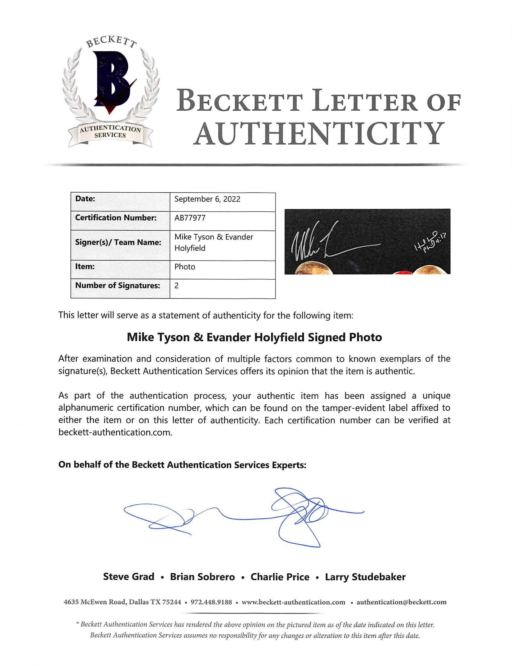 The lot / autograph(s) includes an official Beckett Authentication Services hologram and matching LOA for authenticity purposes.