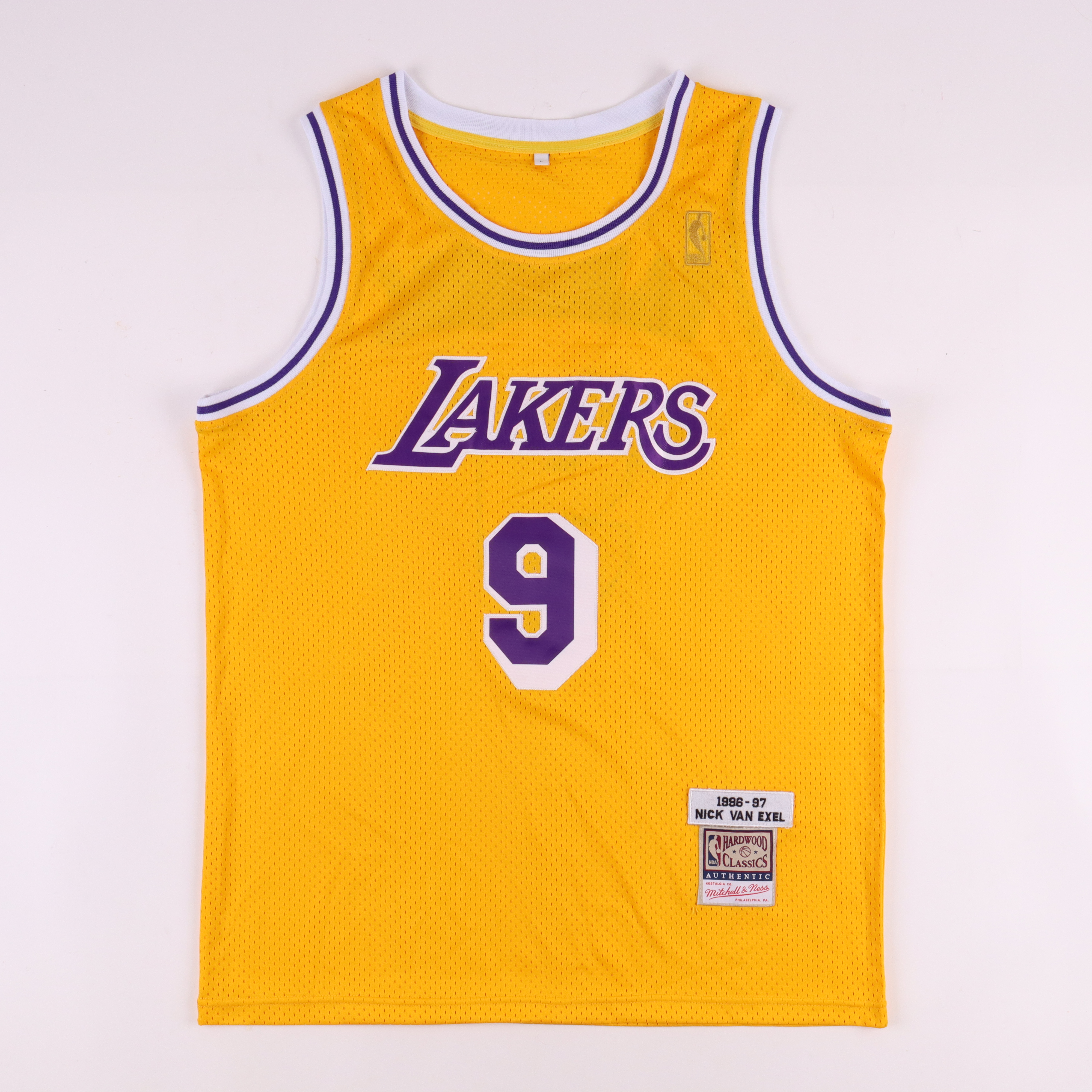 On-court style jersey. Everything is sewn on, size L. Hand-signed by Nick Van Exel.