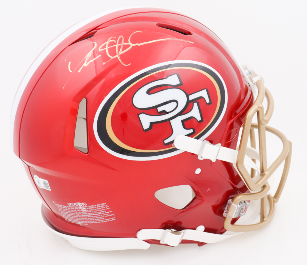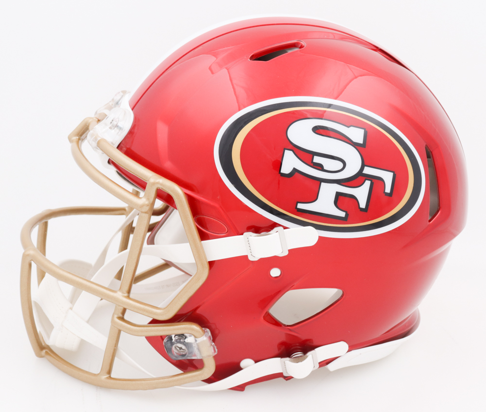 Riddell San Francisco 49ers full-size authentic on-field Flash Alternate Speed helmet. Hand-signed by Deion Sanders (HOF).