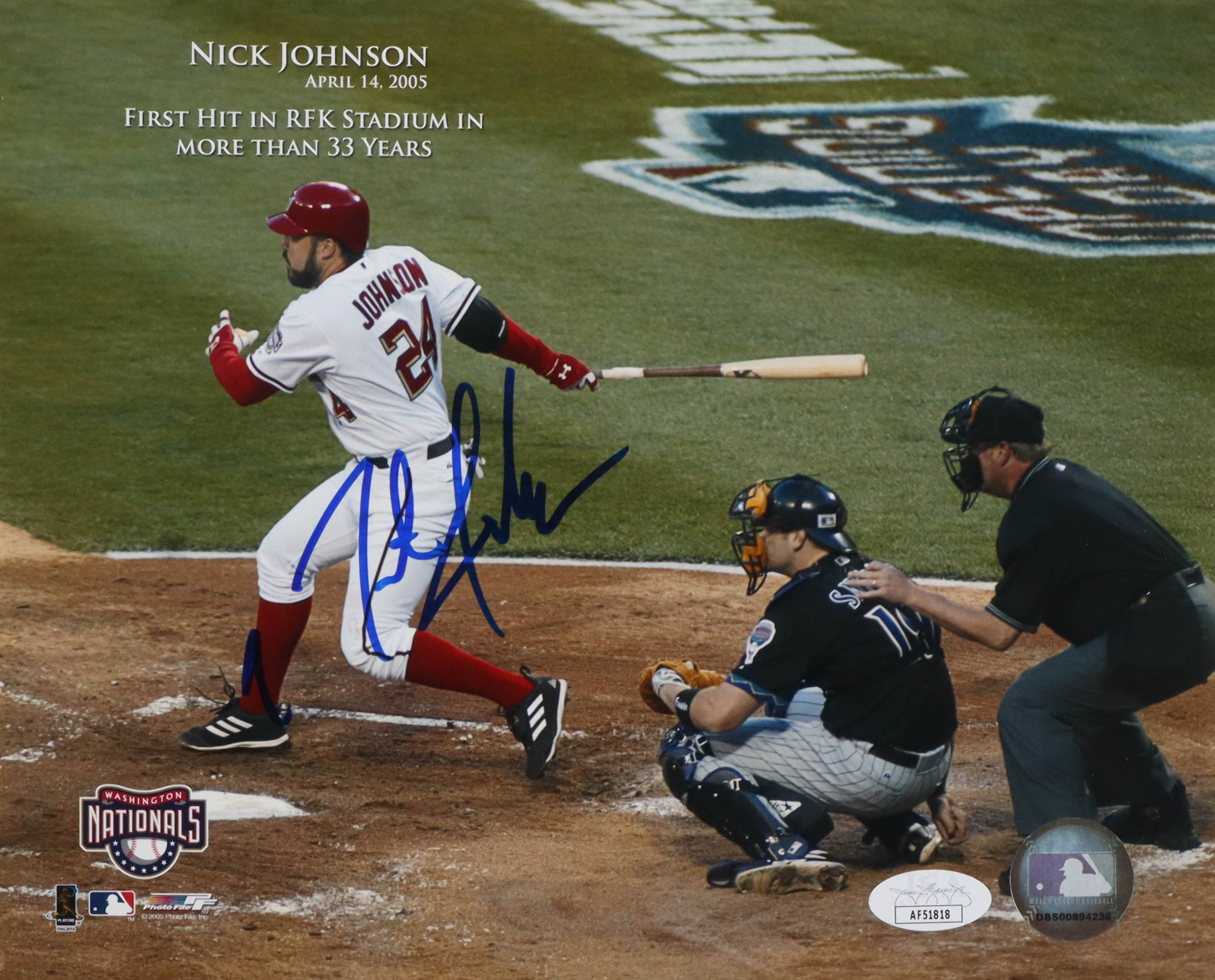 Photo measures 8" x 10" in size and has been hand-signed by Nick Johnson (Washington Nationals).