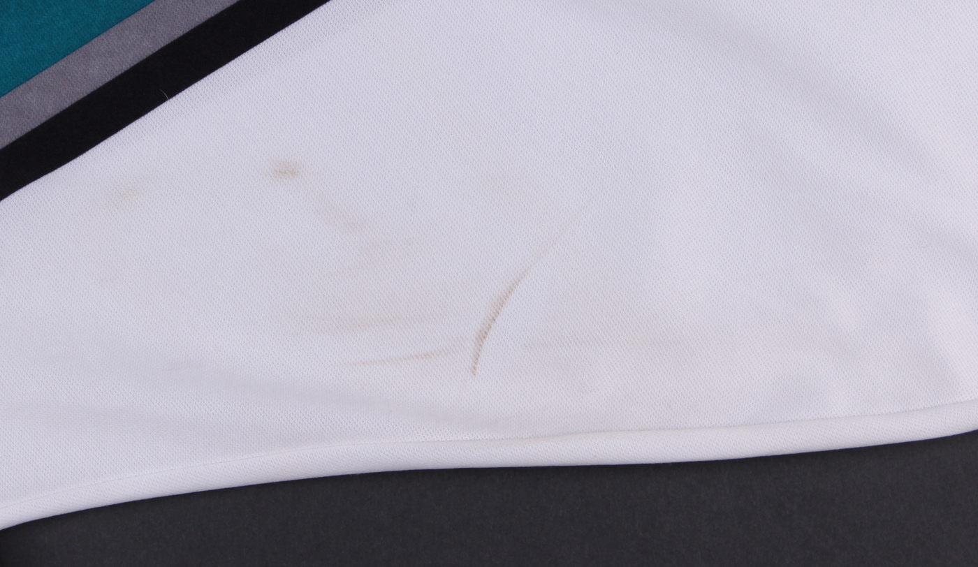 CCM on-ice style captain jersey. Everything sewn on, size XL. Jersey is unsigned. Please note, minor staining on jersey. See photos for details.