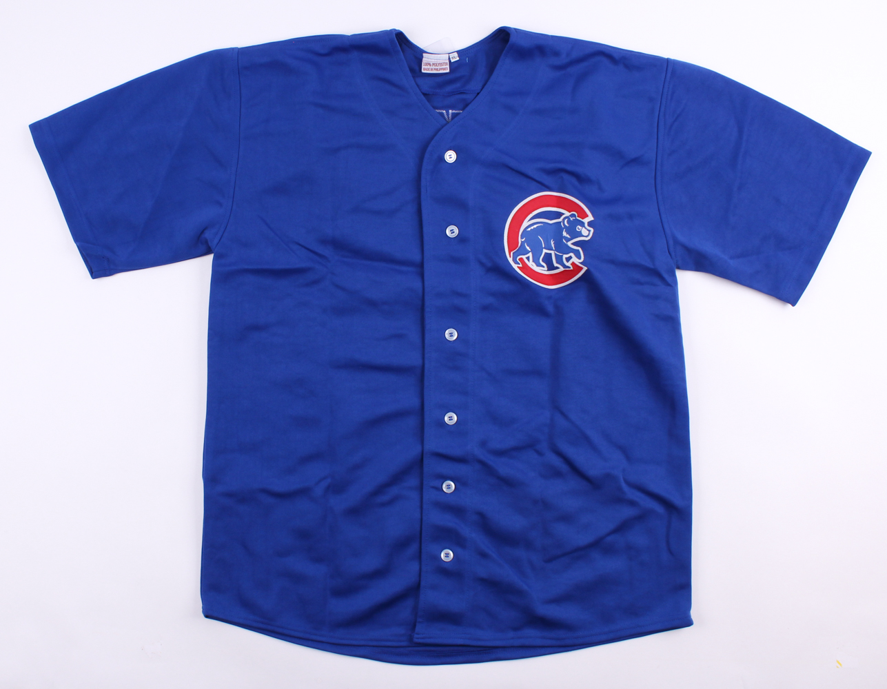Custom on-field style jersey. Everything is sewn on, size XL. Hand-signed in silver paint pen by Bill Buckner (Cubs, Dodgers).