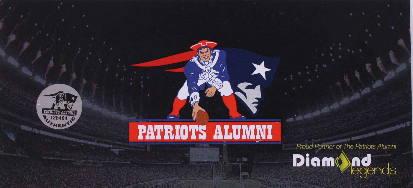 The autograph includes an official Patriots Alumni hologram and matching COA for authenticity purposes.