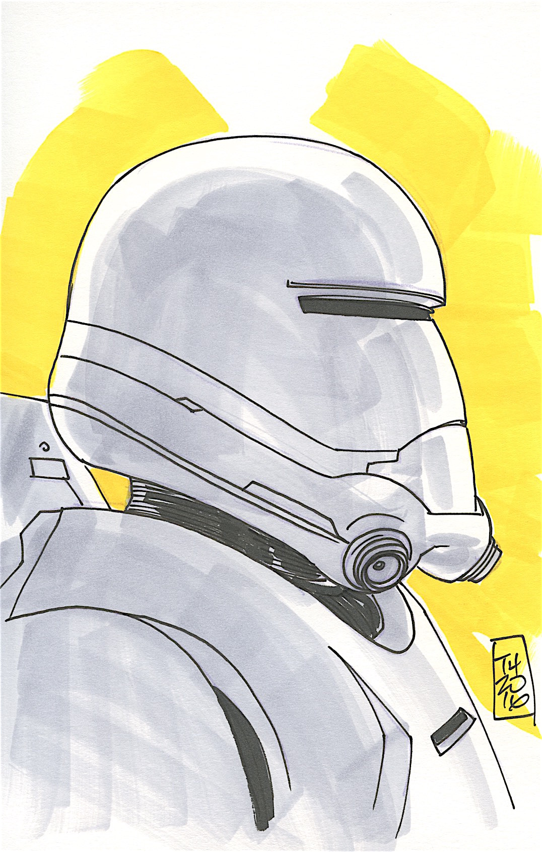 First Order Flametrooper "Star Wars" 1/1 ORIGINAL 5.5" x 8.5" Color Drawing on Paper Signed by Tom Hodges