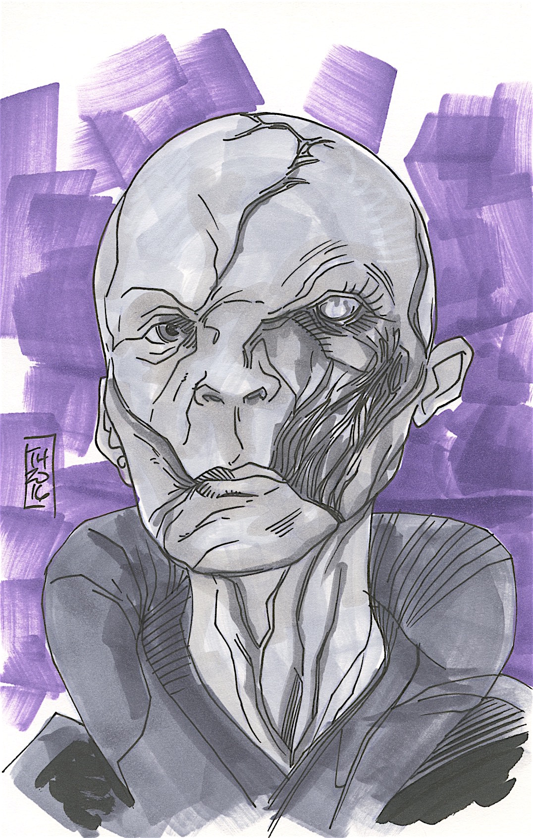 Supreme Leader Snoke "Star Wars" 1/1 ORIGINAL 5.5" x 8.5" Color Drawing on Paper Signed by Tom Hodges