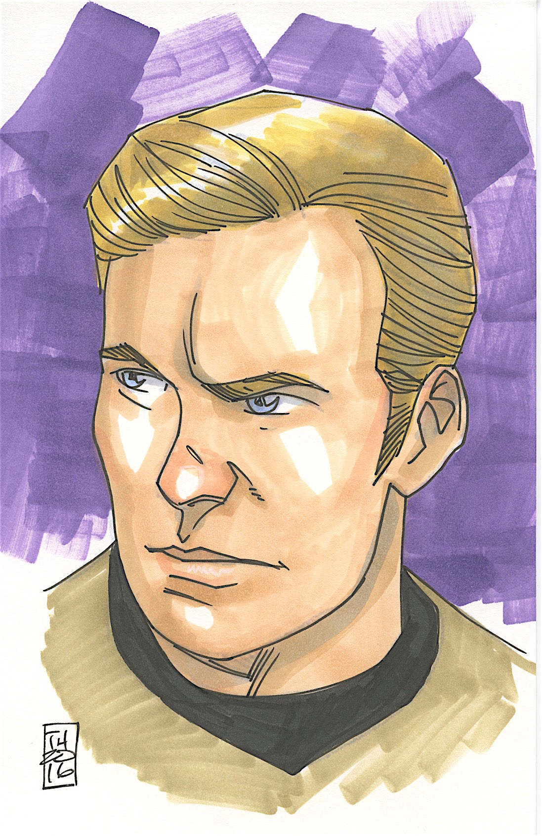 Captain Kirk "Star Trek" 1/1 ORIGINAL 5.5" x 8.5" Color Drawing on Paper Signed by Tom Hodges
