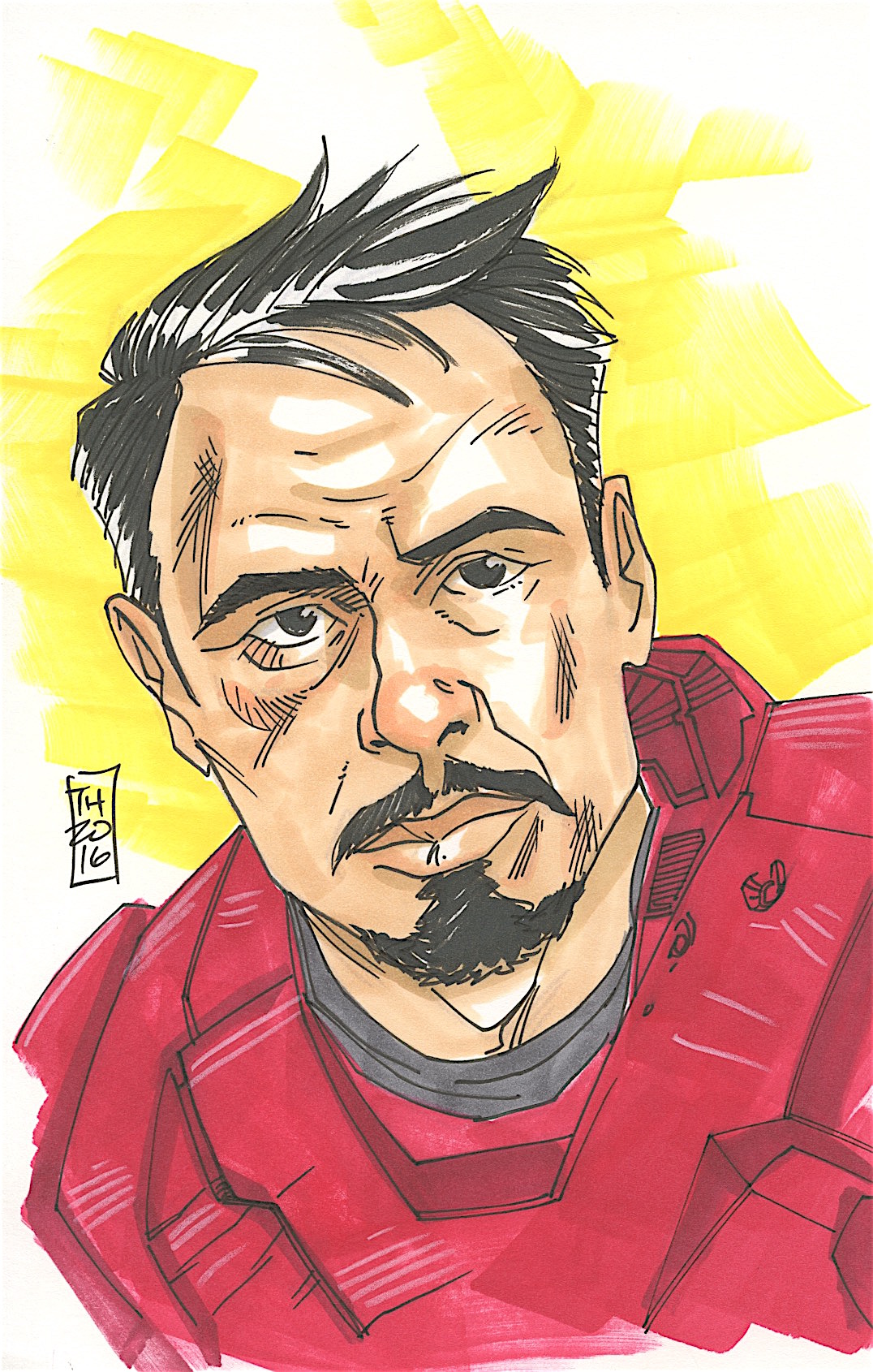 Tony Stark "Iron Man" 1/1 ORIGINAL 5.5" x 8.5" Color Drawing on Paper Signed by Tom Hodges