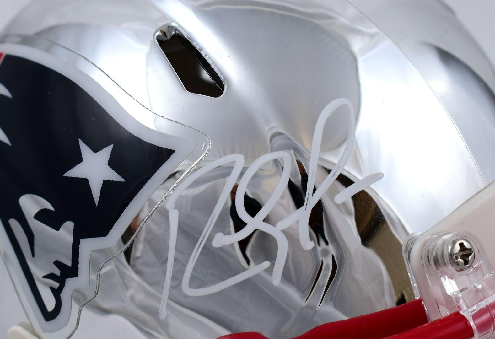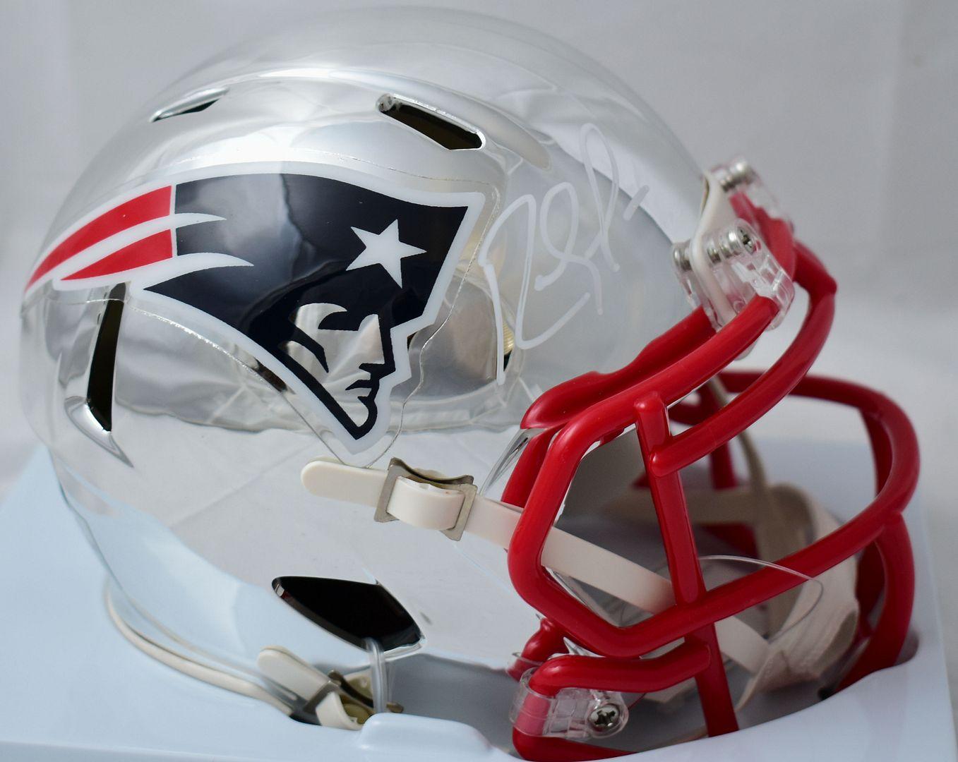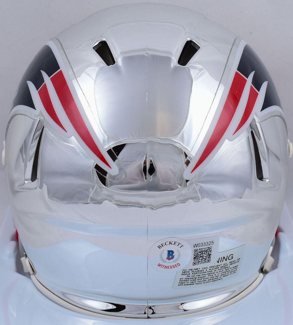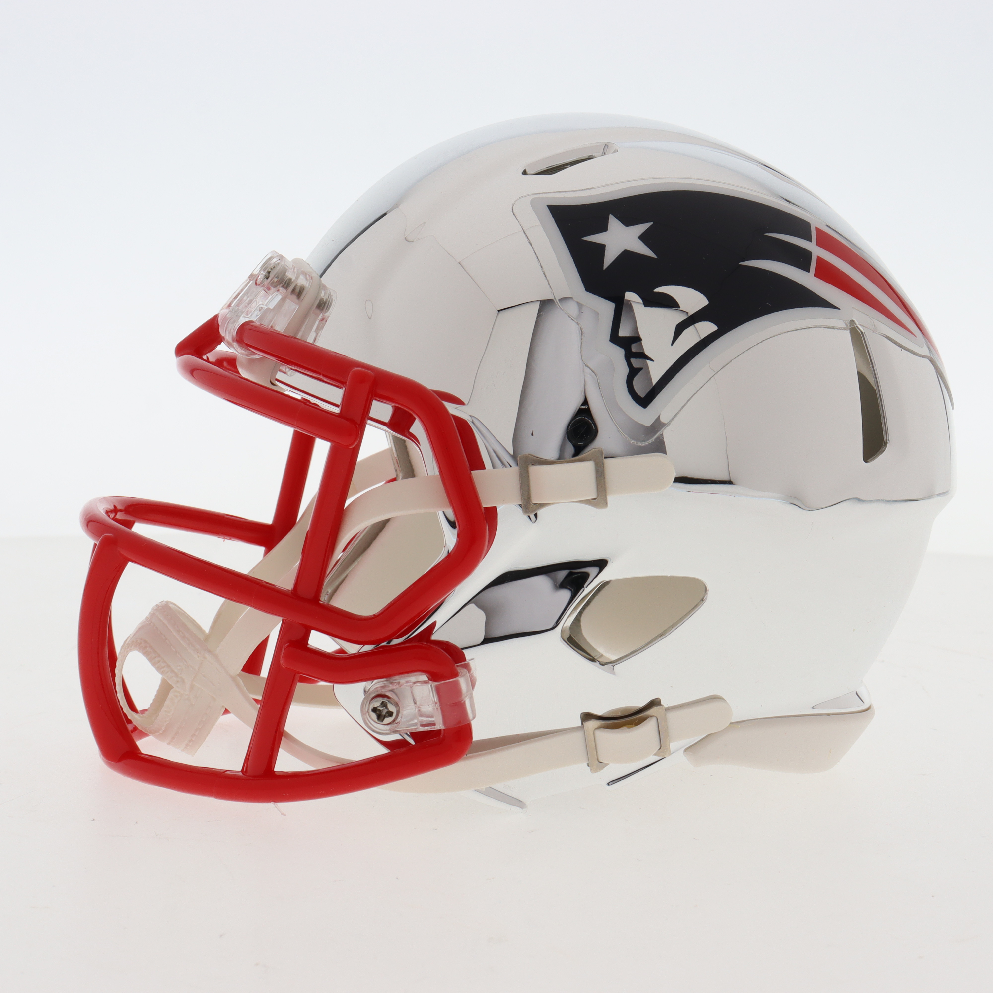 Riddell New England Patriots Chrome Alternate Speed Mini Helmet. Hand-signed by Randy Moss (HOF).