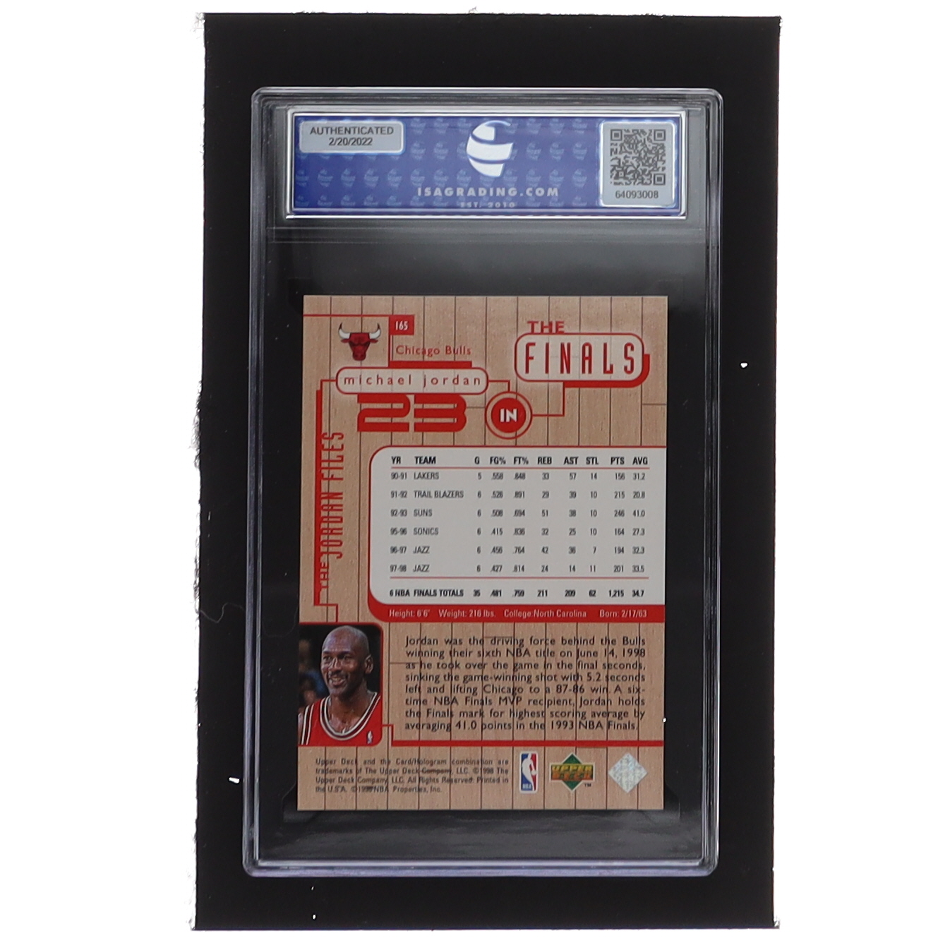 Michael Jordan 1998 Upper Deck Michael Jordan Living Legend #165 JF / NBA Finals (ISA 10)