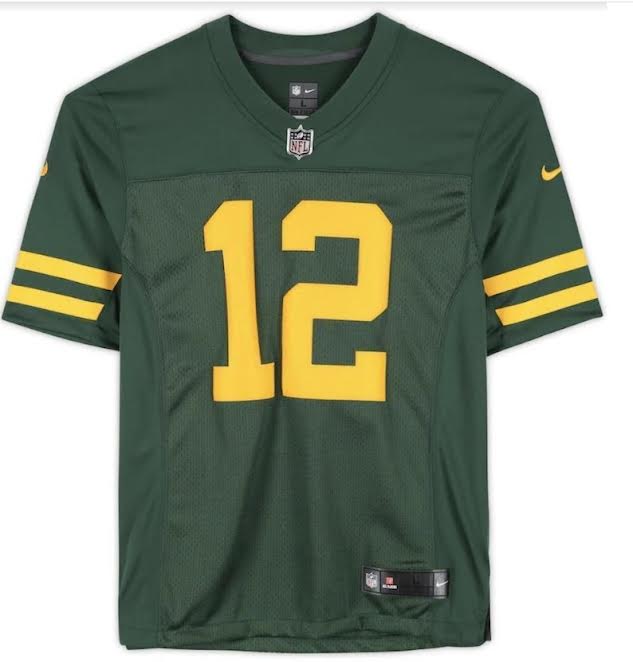 Nike on-field style jersey. Everything sewn on, size XL and has been hand-signed by Aaron Rodgers (Green Bay Packers).