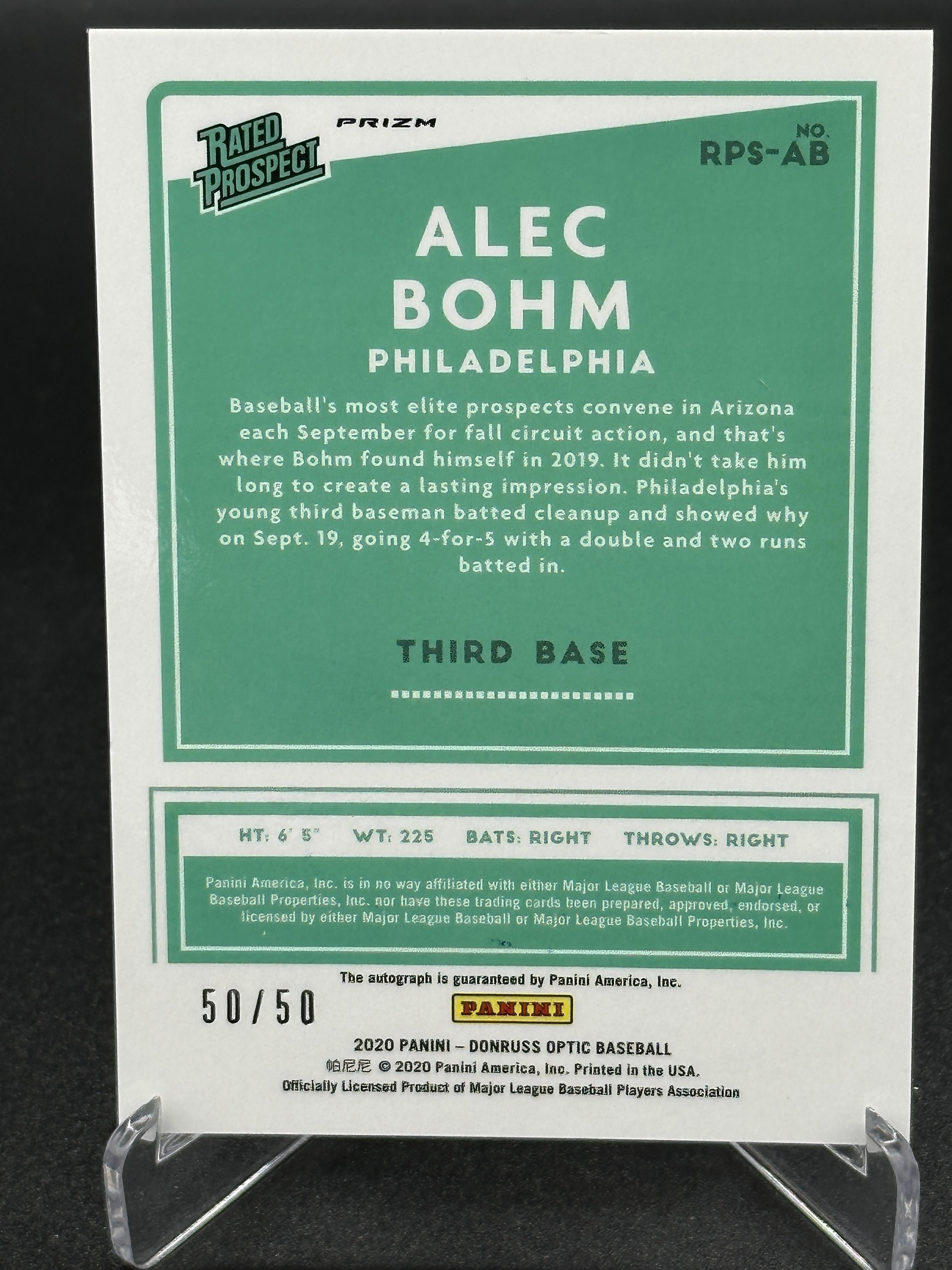 Alec Bohm 2020 Donruss Optic Rated Prospects Signatures Blue #7