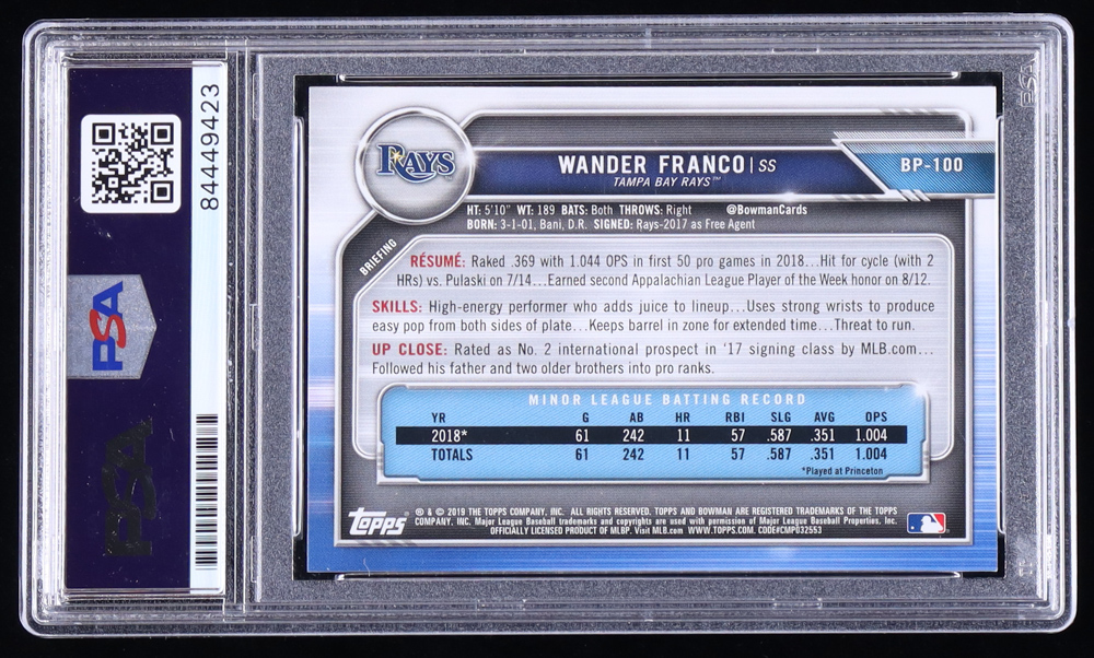 Wander Franco Signed 2019 Bowman Prospects #BP100 RC (PSA)