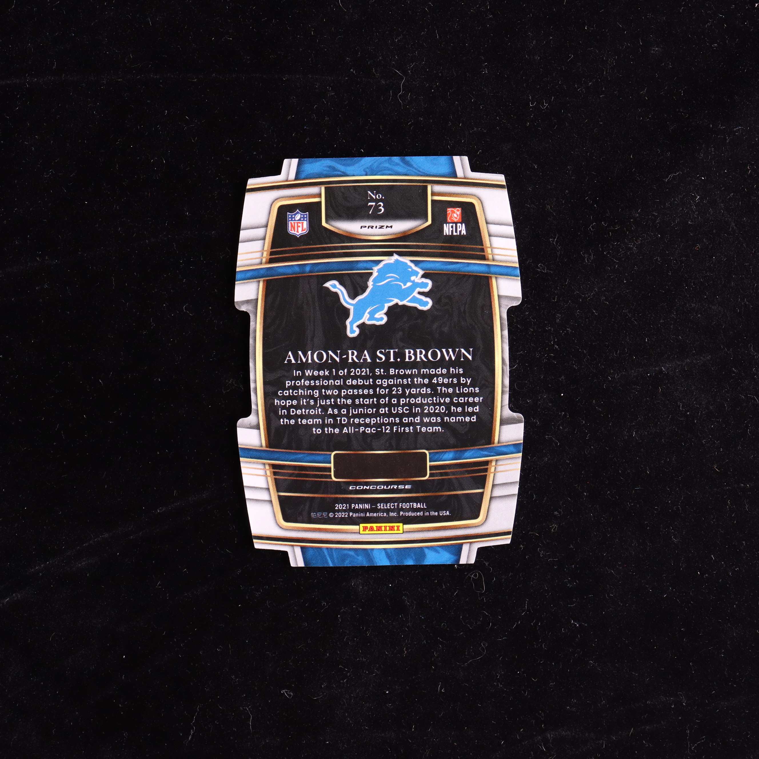 Amon-Ra St. Brown 2021 Select Prizm Black and Gold Die Cut #73 RC