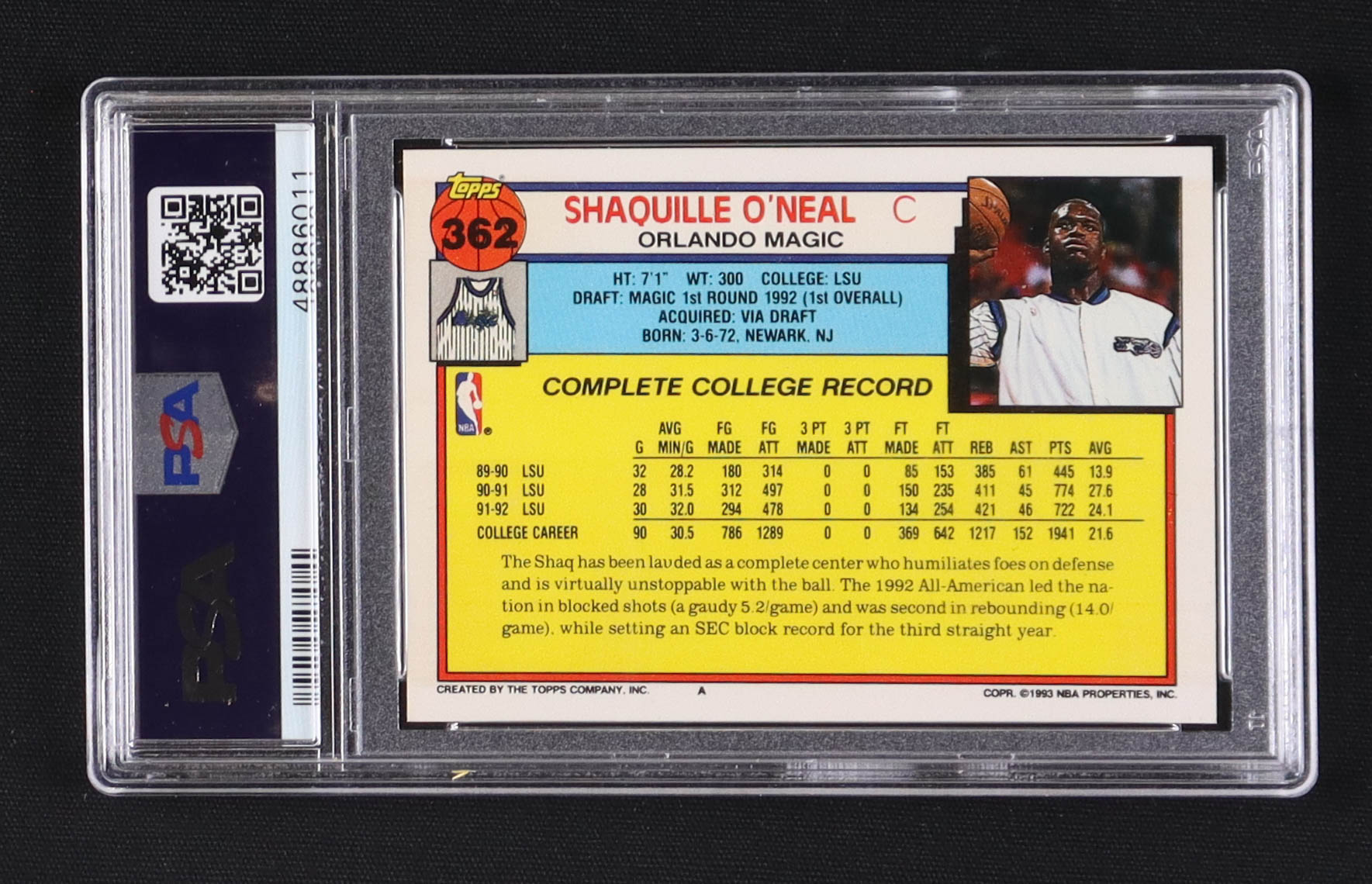 Shaquille O'Neal 1992-93 Topps #362 RC (PSA 9)
