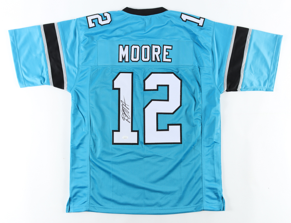Custom on-field style jersey. Everything is sewn on, size XL. Hand-signed by D. J. Moore.