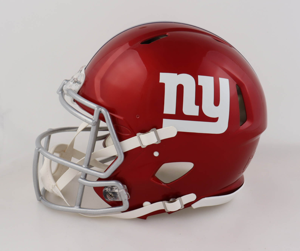 Riddell New York Giants full-size replica Flash Alternate Speed helmet. Hand-signed by Daniel Jones.