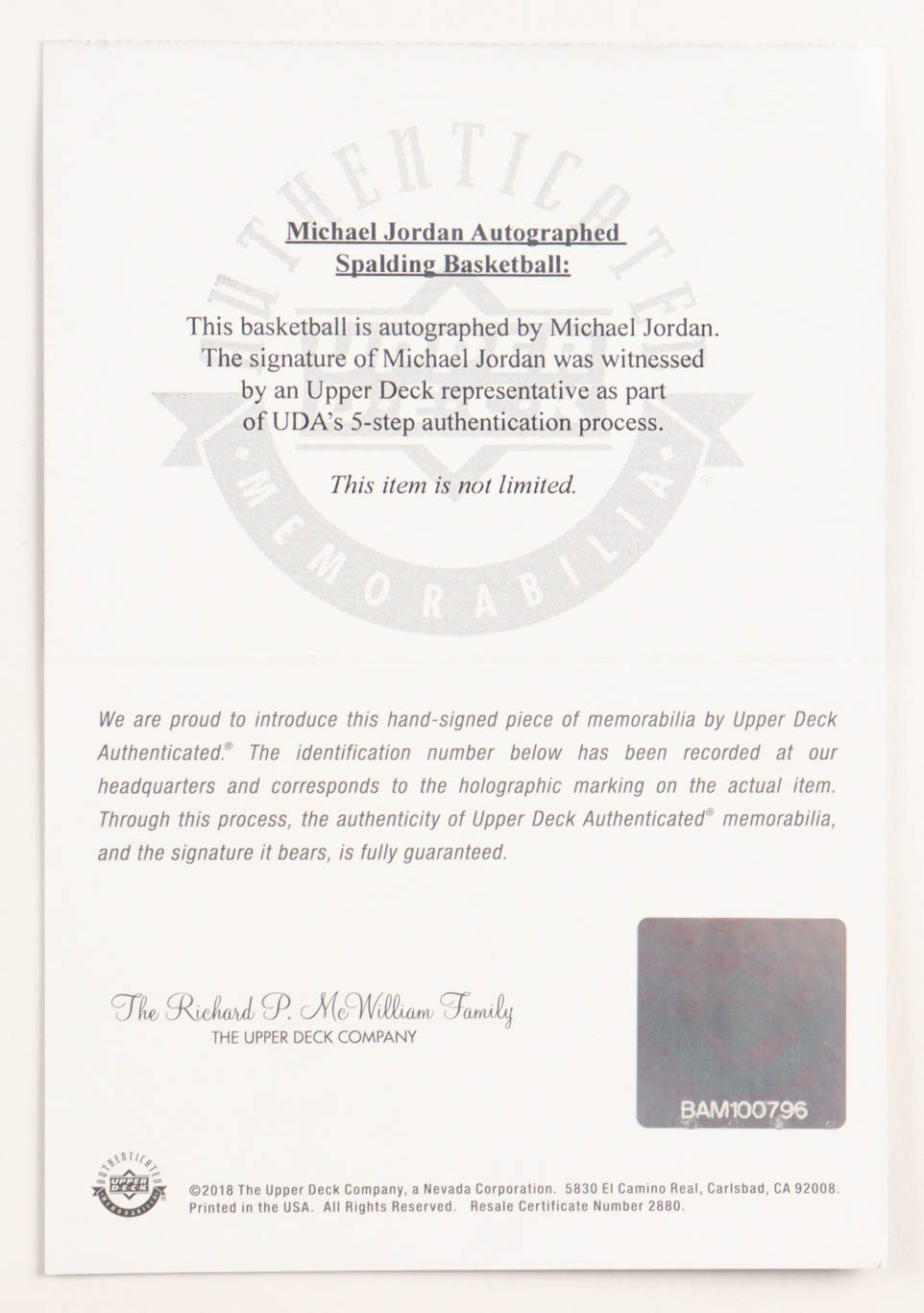 The lot / autograph(s) includes an official Upper Deck Authenticated (UDA) hologram and matching COA for authenticity purposes.