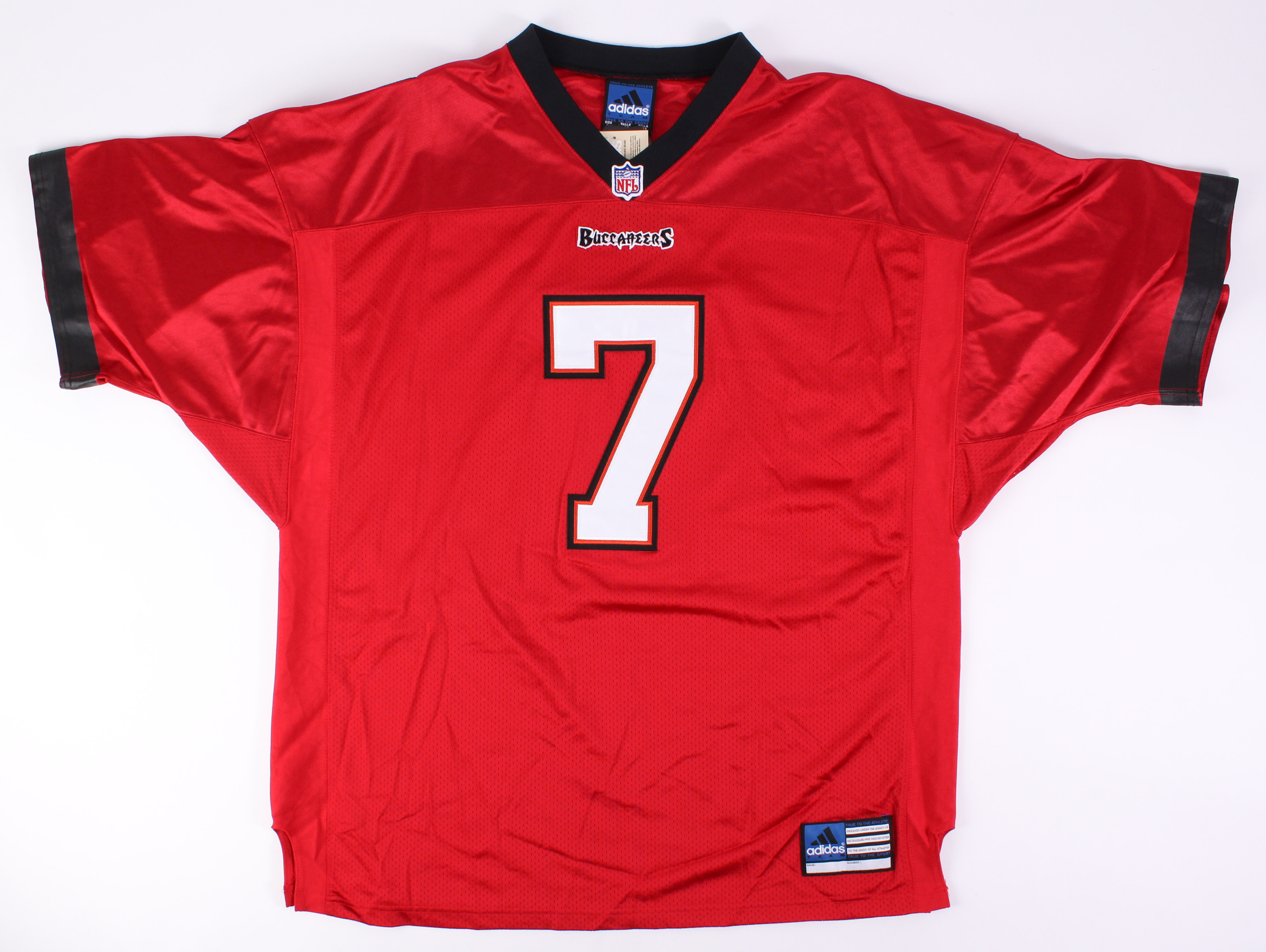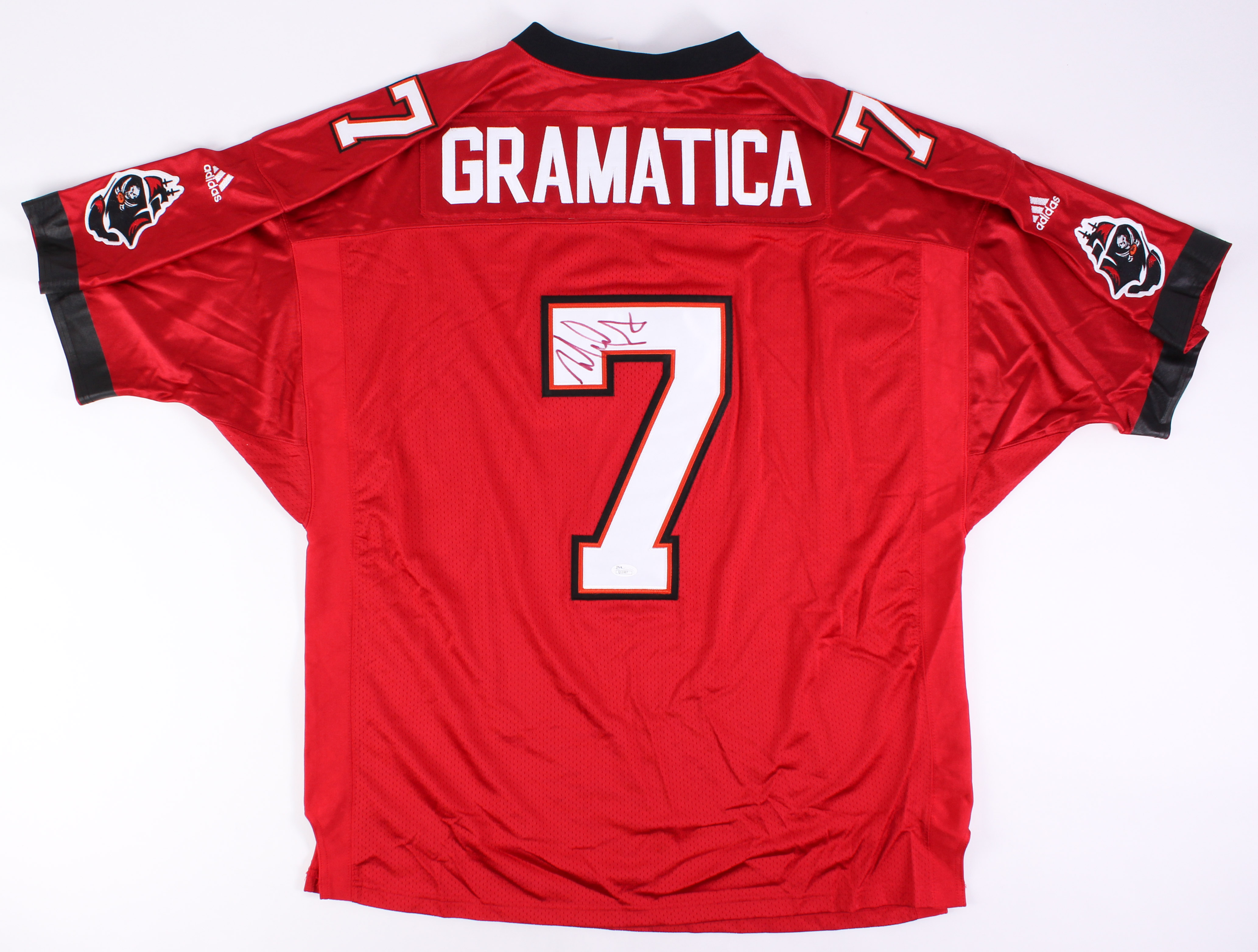 Adidas on-field style jersey. Everything sewn on, size 3X. Hand-signed in red felt tip pen by Martin Gramatica (Buccaneers).