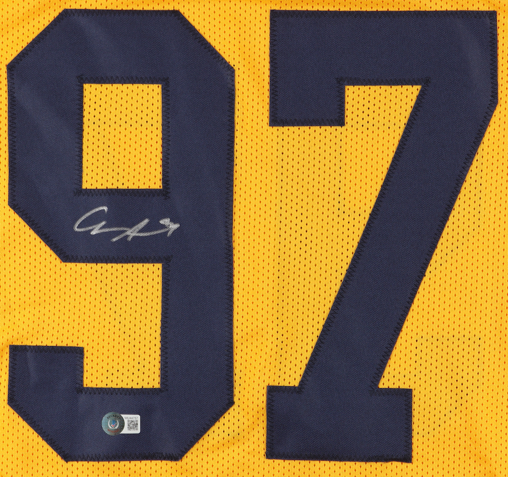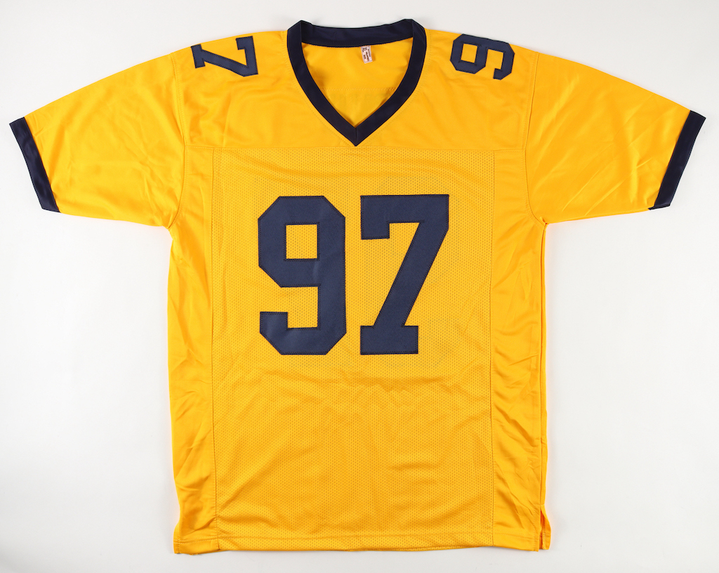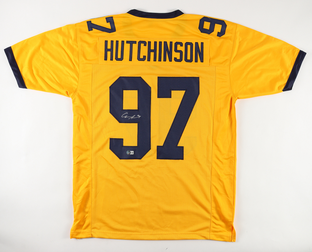 Custom on-field style jersey. Everything is sewn on, size XL. Hand-signed by Aidan Hutchinson.