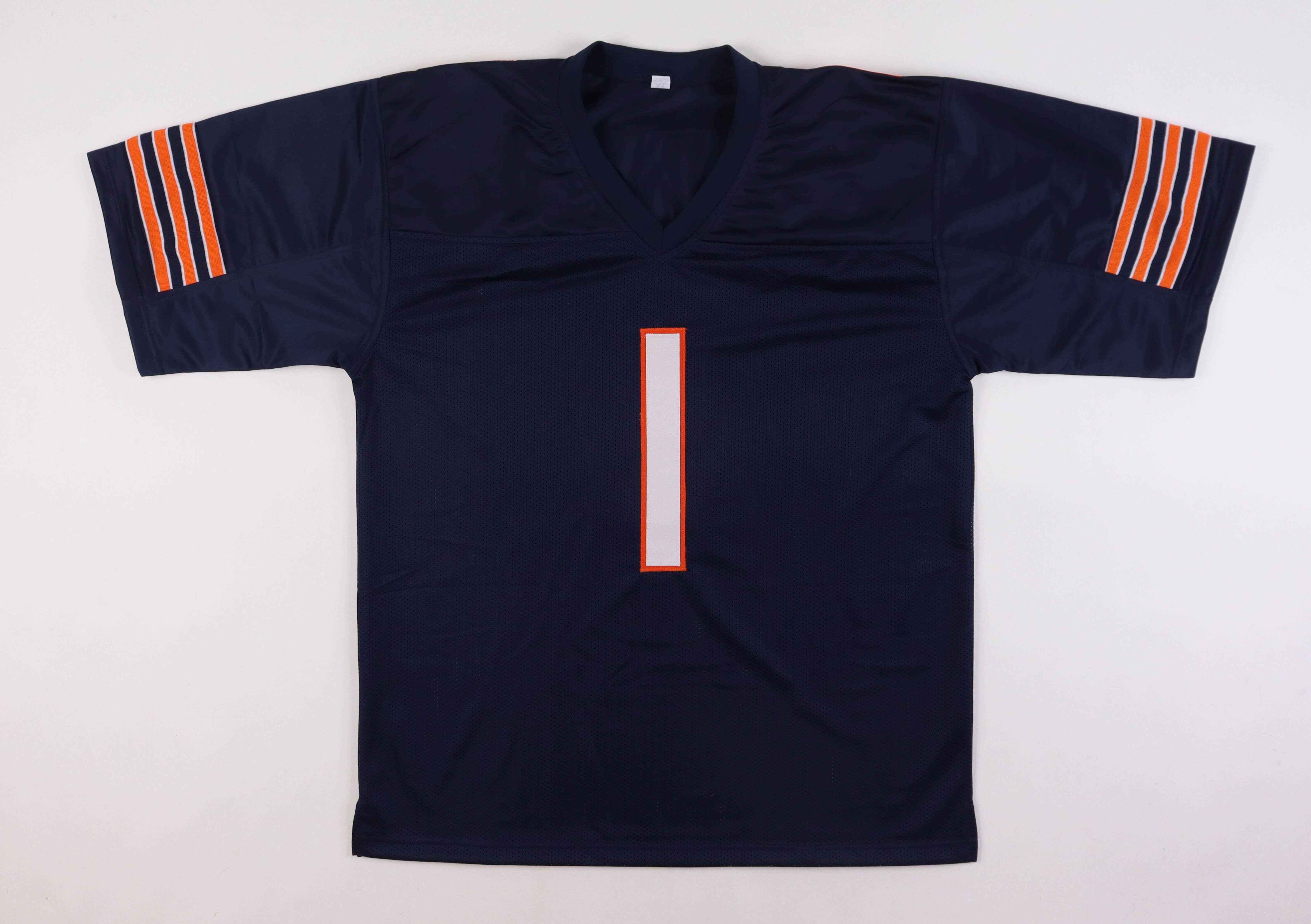 Custom on-field style jersey. Everything is sewn on, size XL. Hand-signed by Justin Fields.