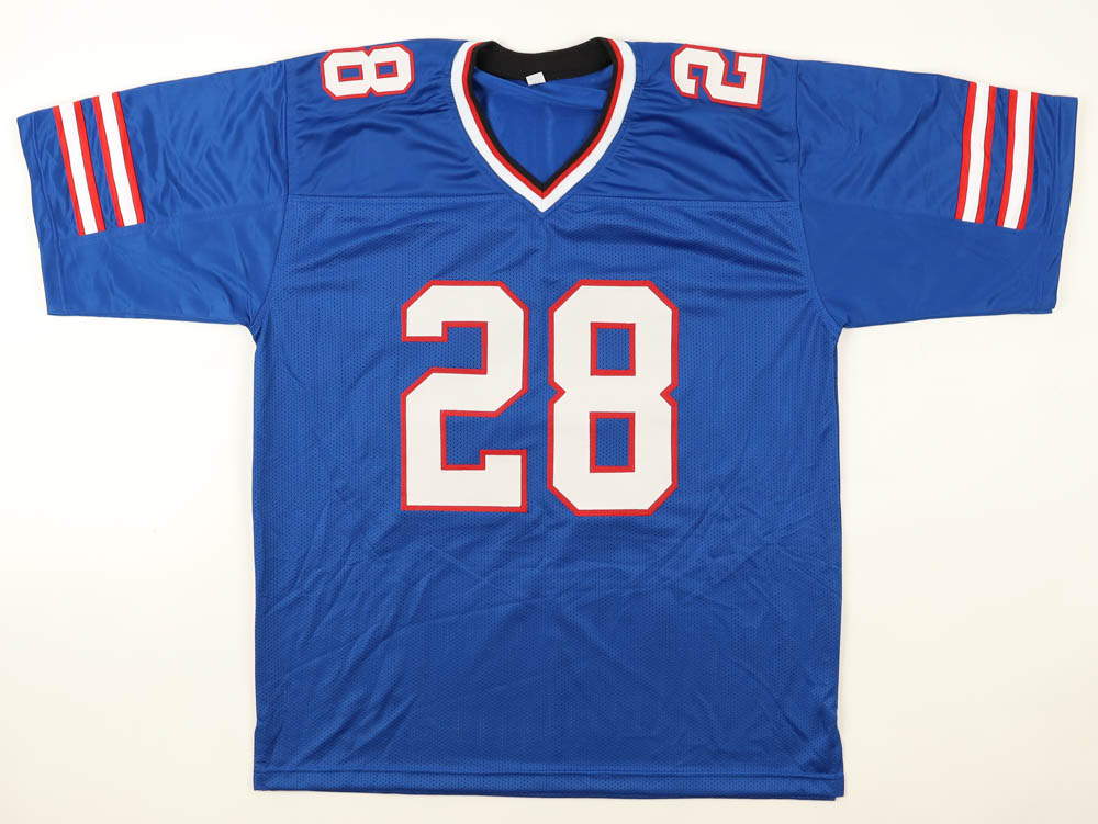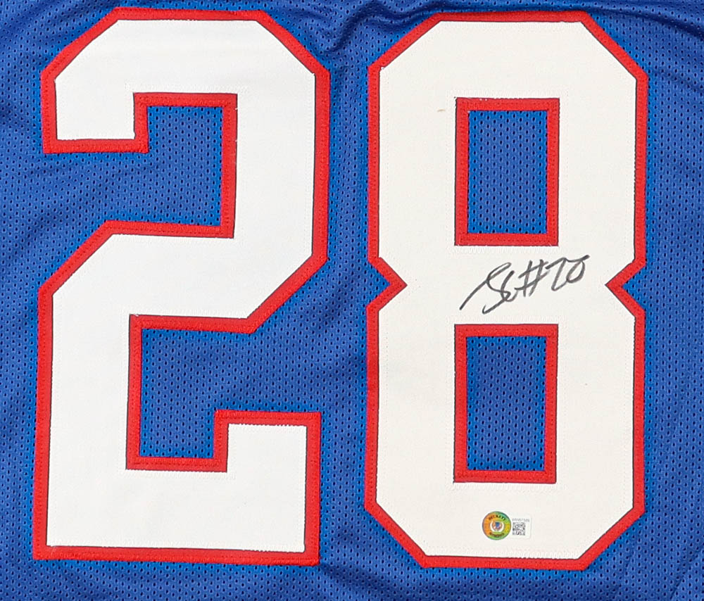 Custom on-field style jersey. Everything is sewn on, size XL. Hand-signed by James Cook.