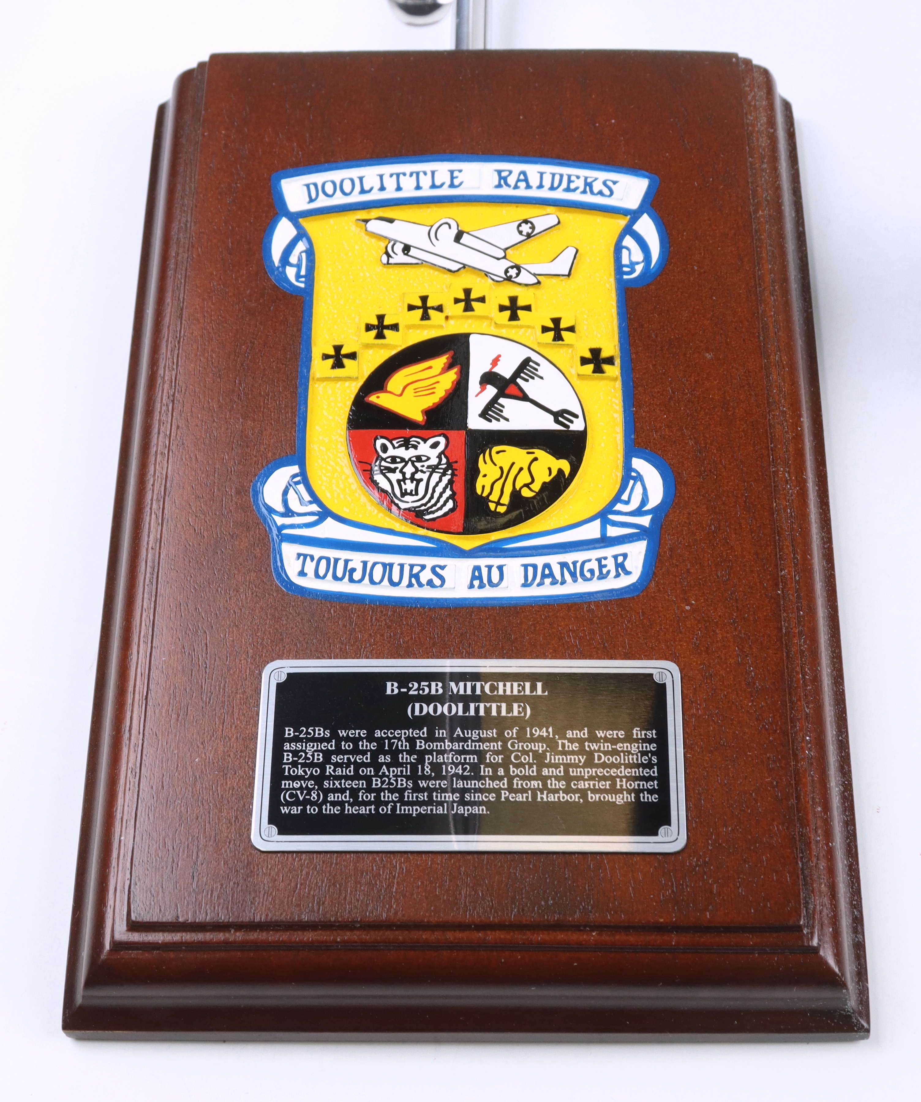 Richard E. Cole Signed WWII B-25 'Doolittle' Bomber Model Airplane with Engraved Display Stand (PSA)