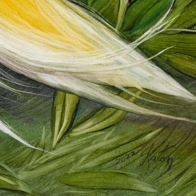 "Bird of Paradise" is an original oil painting on stretched canvas by Martin Katon, hand-signed by the artist. Includes Letter of Authenticity. Measures approx. 24" x 30" (image).