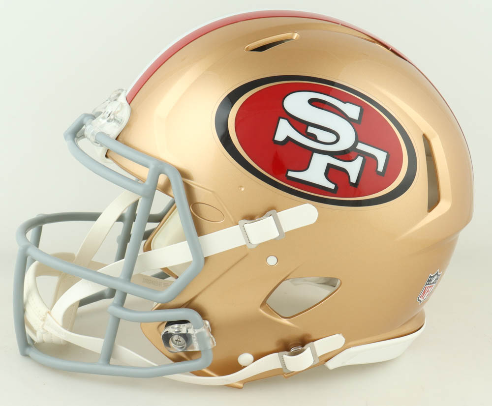 Riddell San Francisco 49ers full-size authentic on-field Speed helmet. Has been hand-signed by George Kittle.