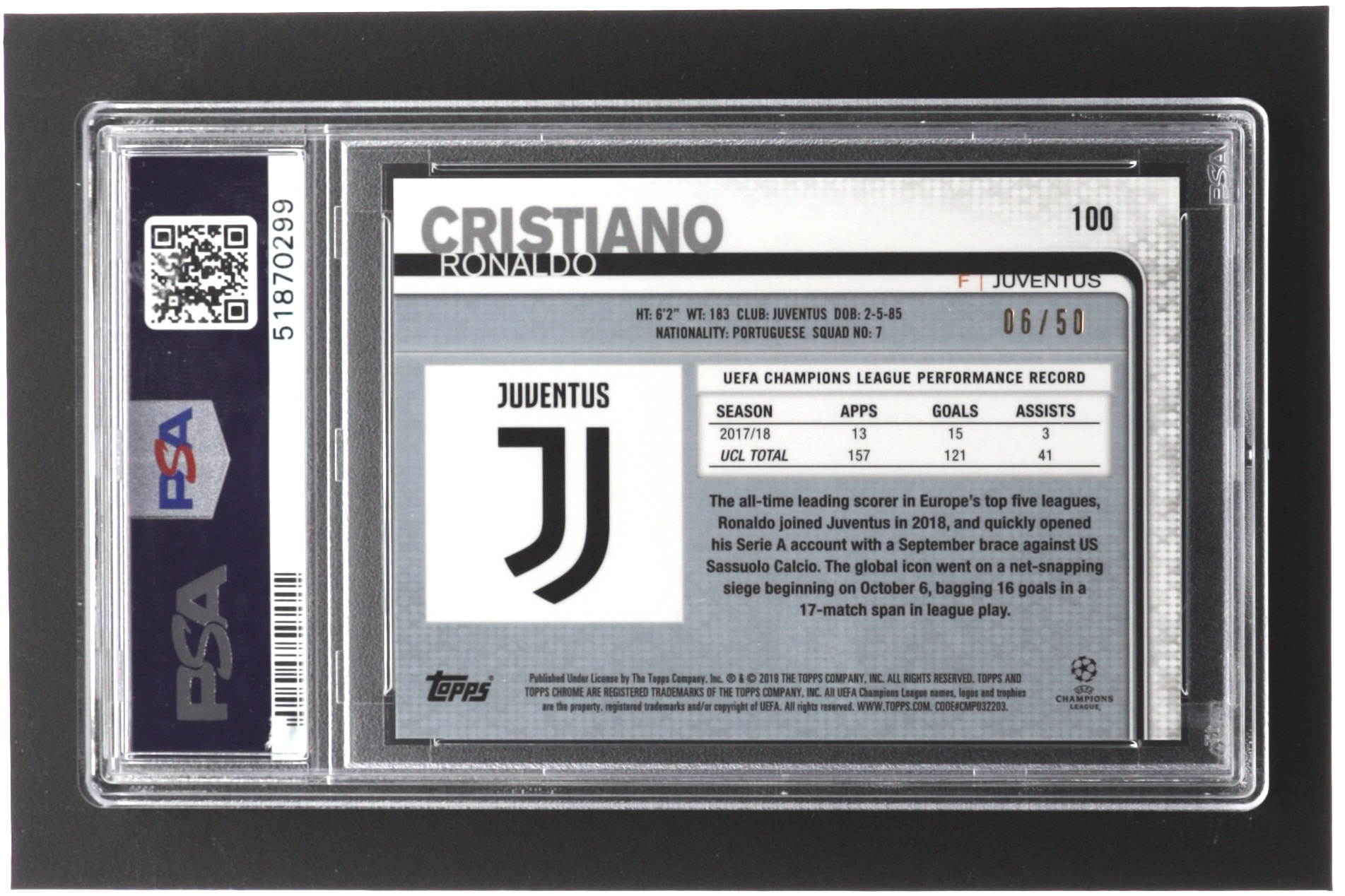 Cristiano Ronaldo 2018-19 Topps Chrome UEFA Champions League Gold Refractors #100 #06/50 (PSA 9)
