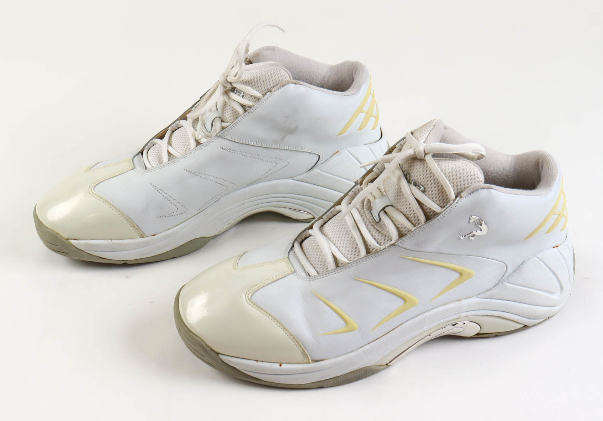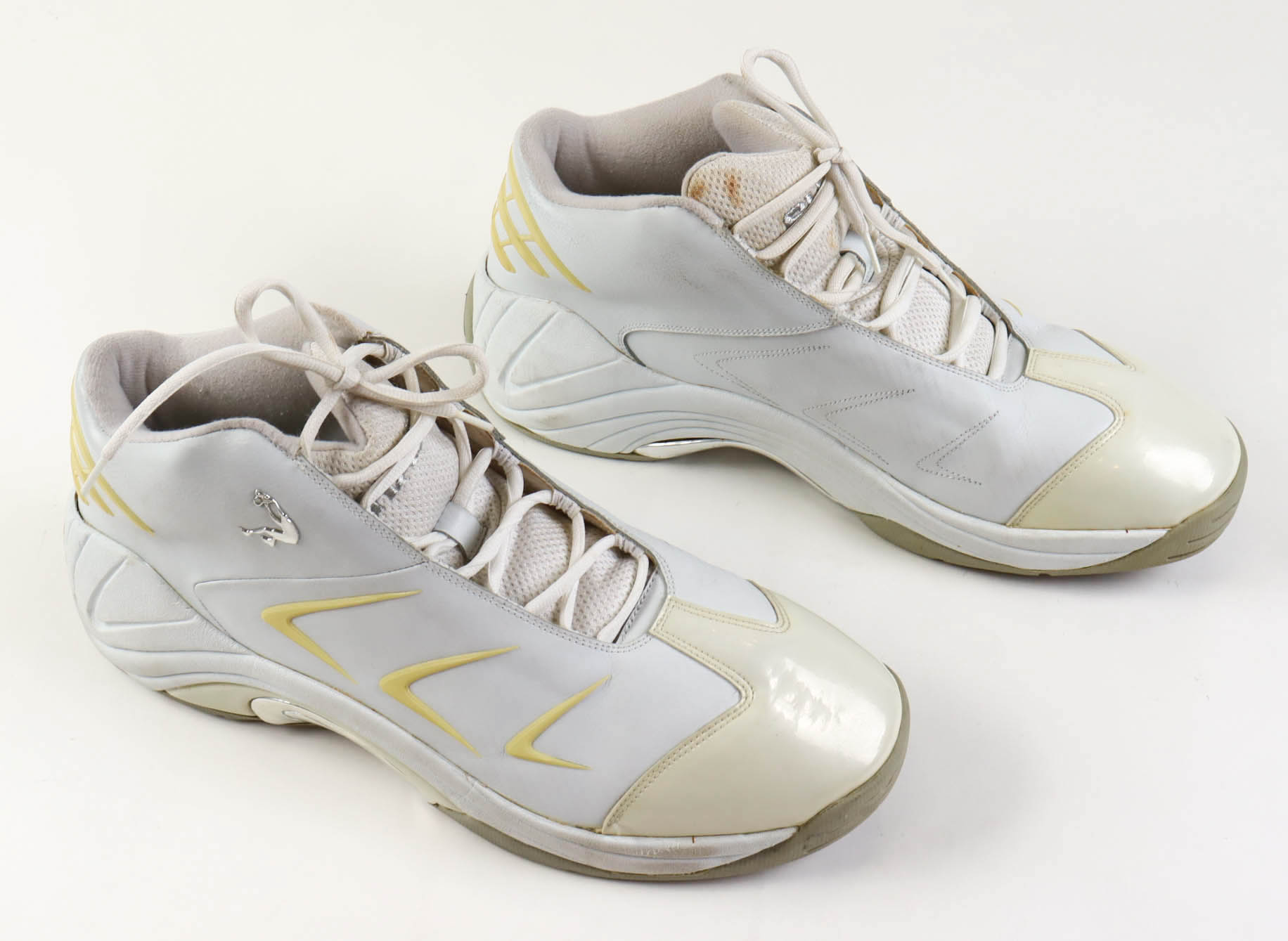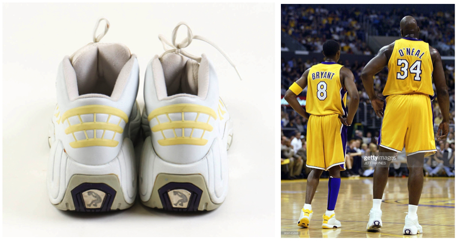 Pair of Game-Used Shaq basketball shoes, Size 22. The shoes were worn by Shaquille O'Neal during the 2002 NBA Finals when the Los Angeles Lakers took on the New Jersey Nets.