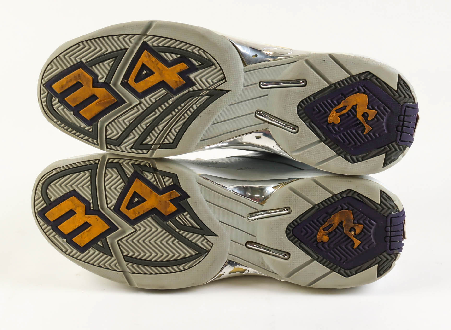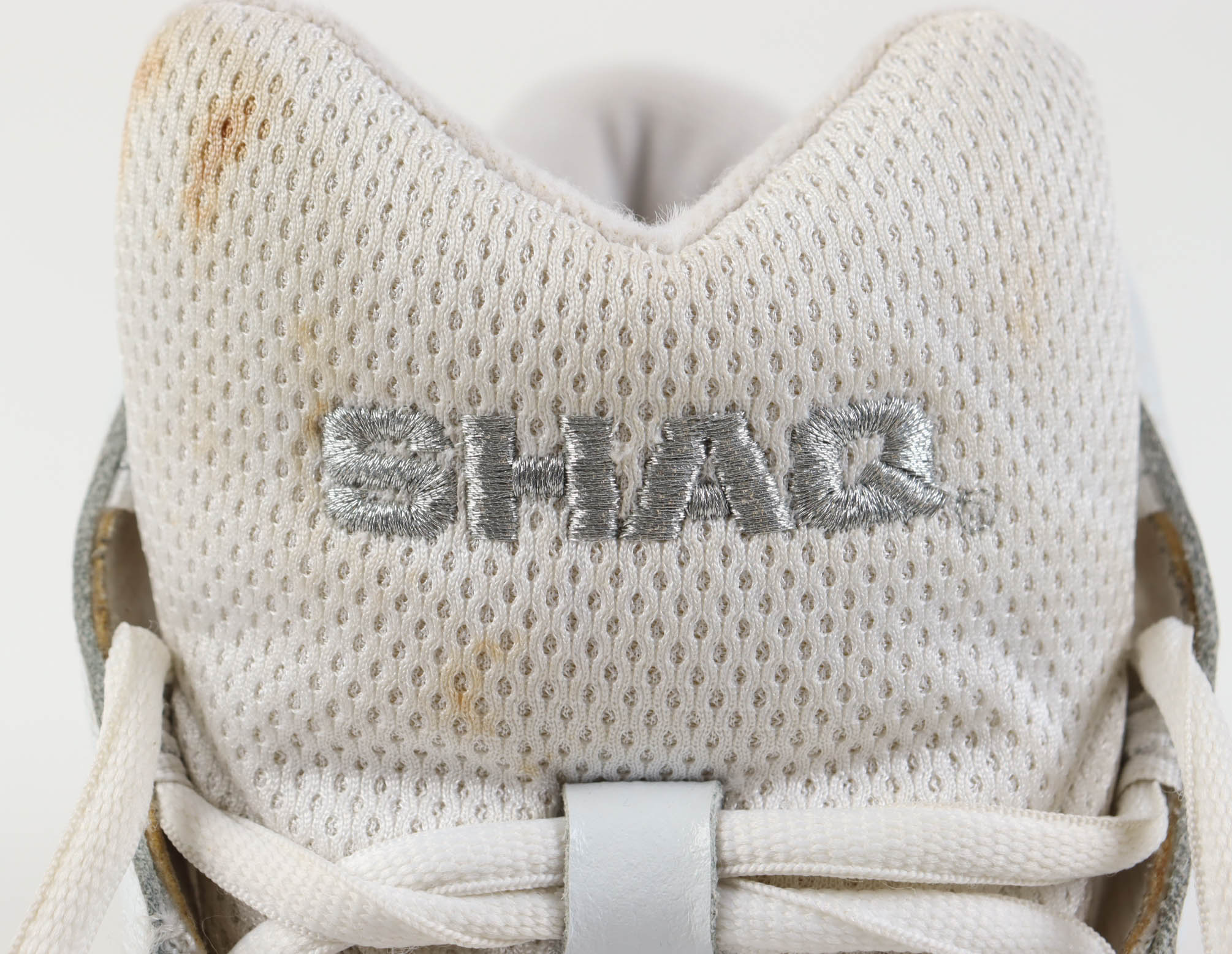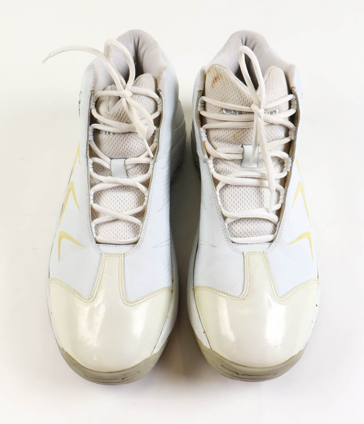 Pair of Game-Used Shaq basketball shoes, Size 22. The shoes were worn by Shaquille O'Neal during the 2002 NBA Finals when the Los Angeles Lakers took on the New Jersey Nets.
