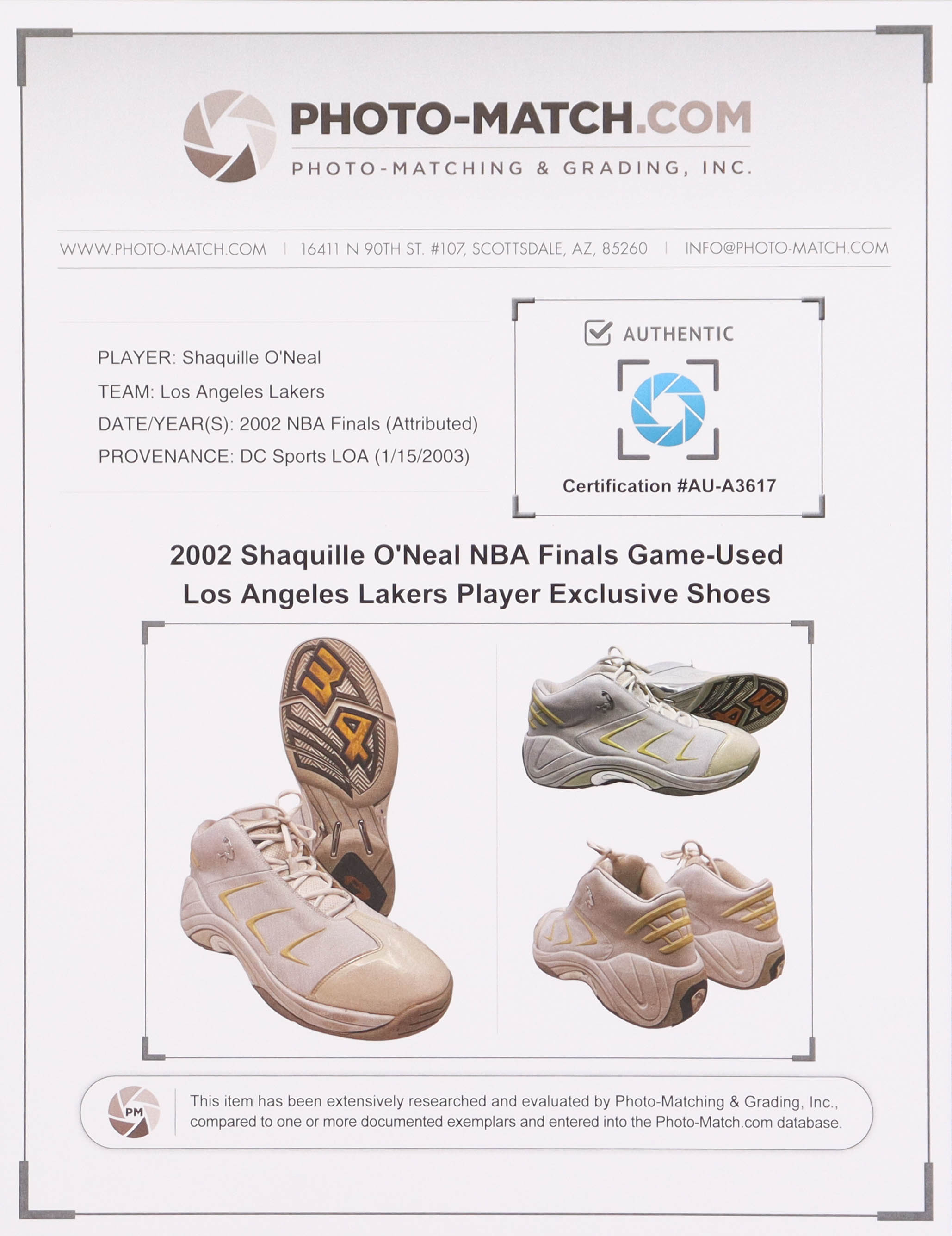 The shoes includes an official Photo-Match.com LOA for authenticity purposes.