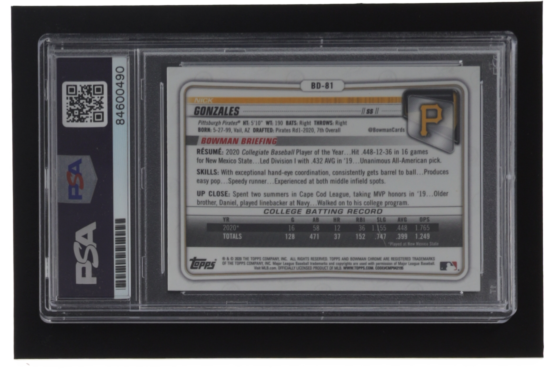 Nick Gonzales Signed 2020 Bowman Chrome Draft #BD81 (PSA)