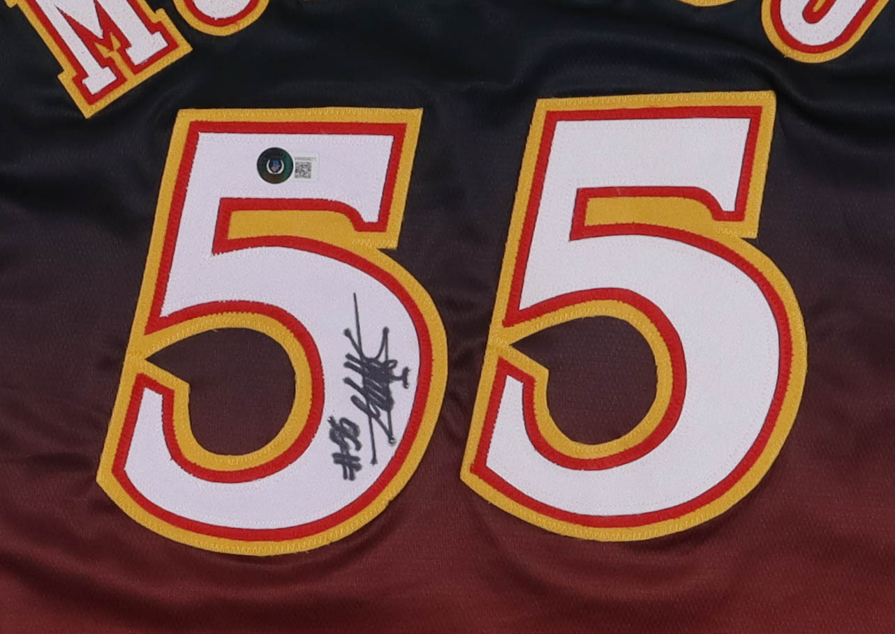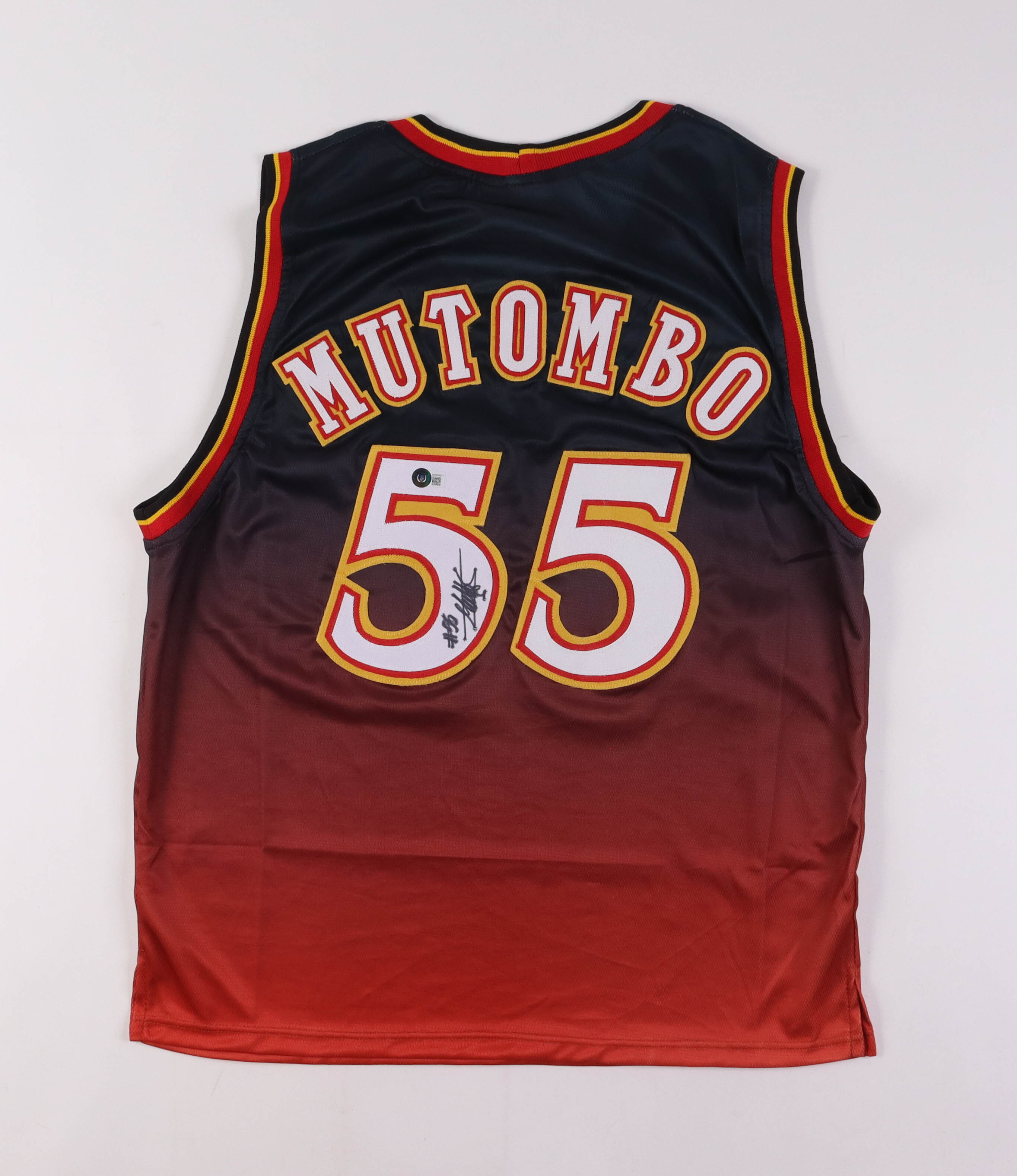 Custom jersey. Everything sewn on, size XL. Hand-signed by Dikembe Mutombo (D, 2024, HOF).