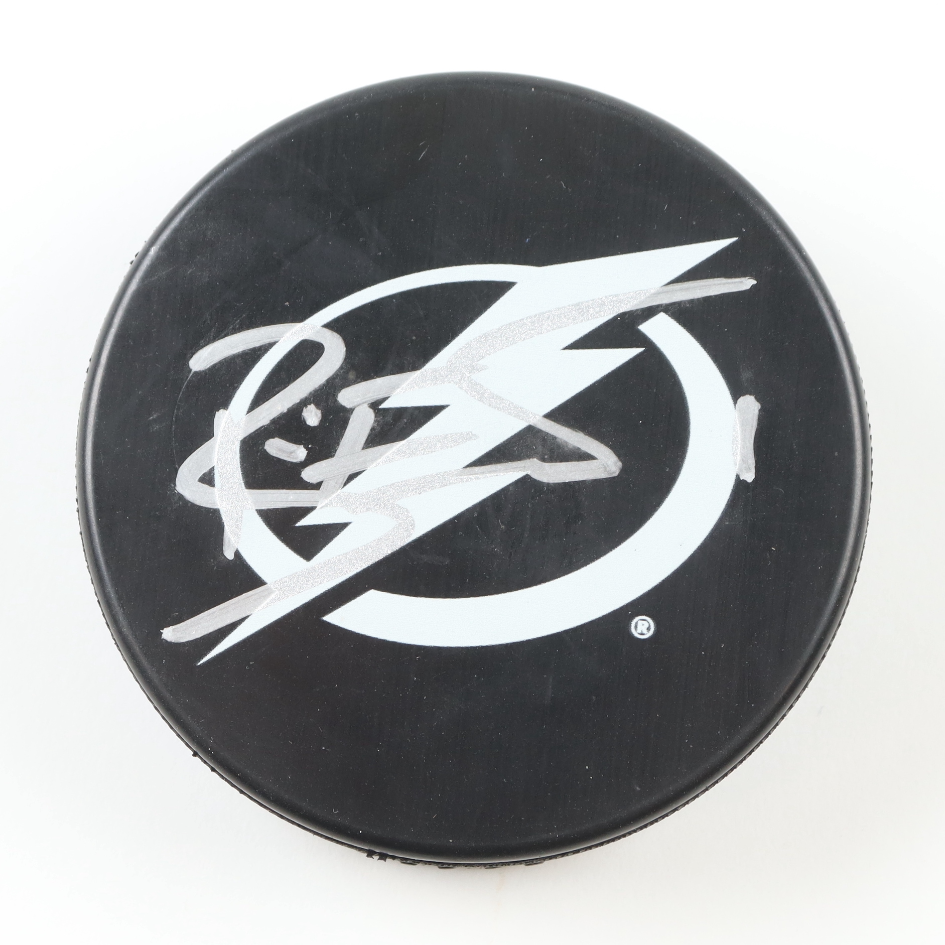 Tampa Bay Lightning Logo Hockey Puck. Hand-signed by Brian Elliott.