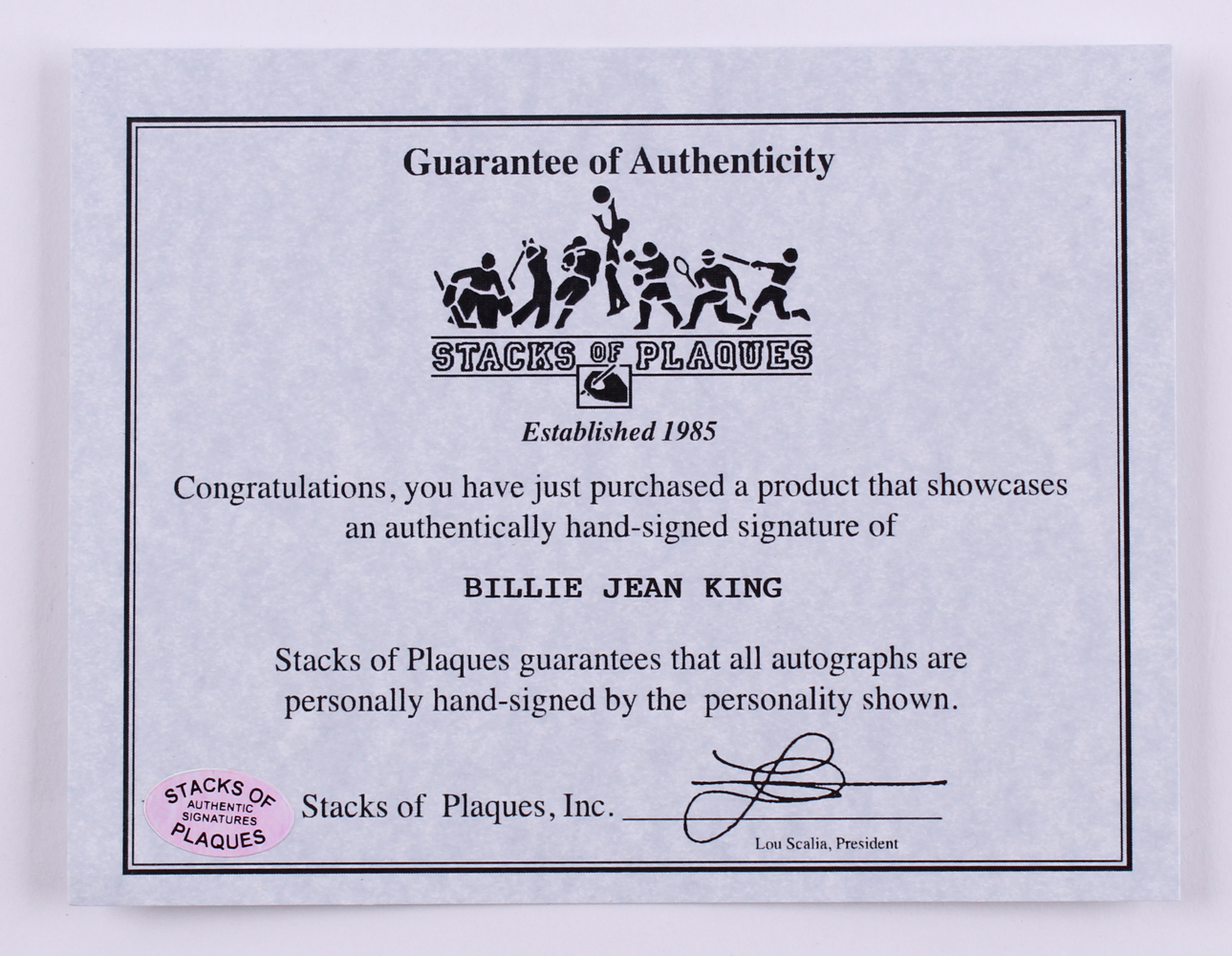 The autograph includes an official Stacks of Plaques - Est. 1985, celebrating 30 years in the business - hologram and matching COA for authenticity purposes.