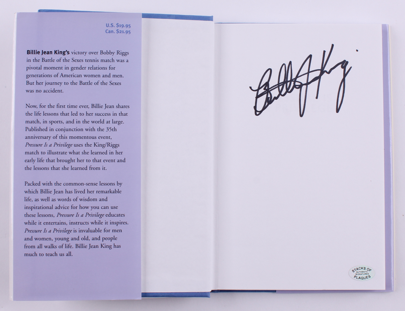 Billie Jean King Signed "Pressure is A Privilege" Hardback Book (SOP COA)